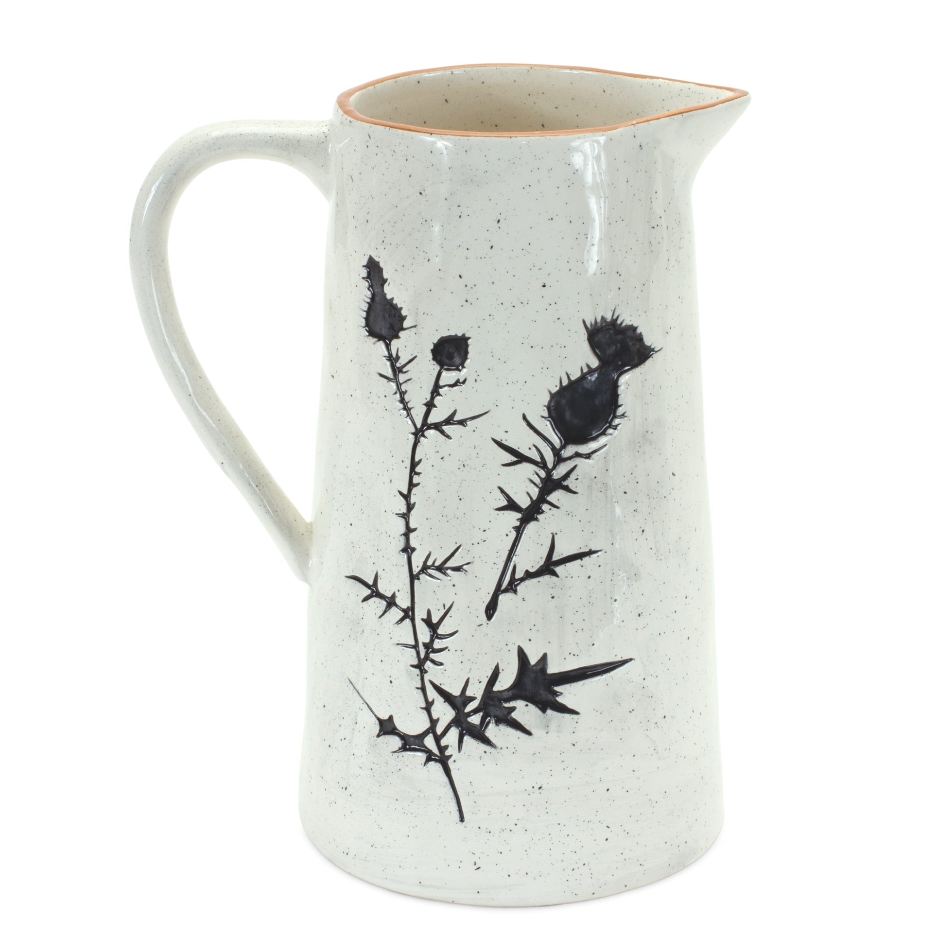 Ceramic Pitcher Vase Set of 2 with 10 Inch Height Rustic Etched Floral Design by Melrose