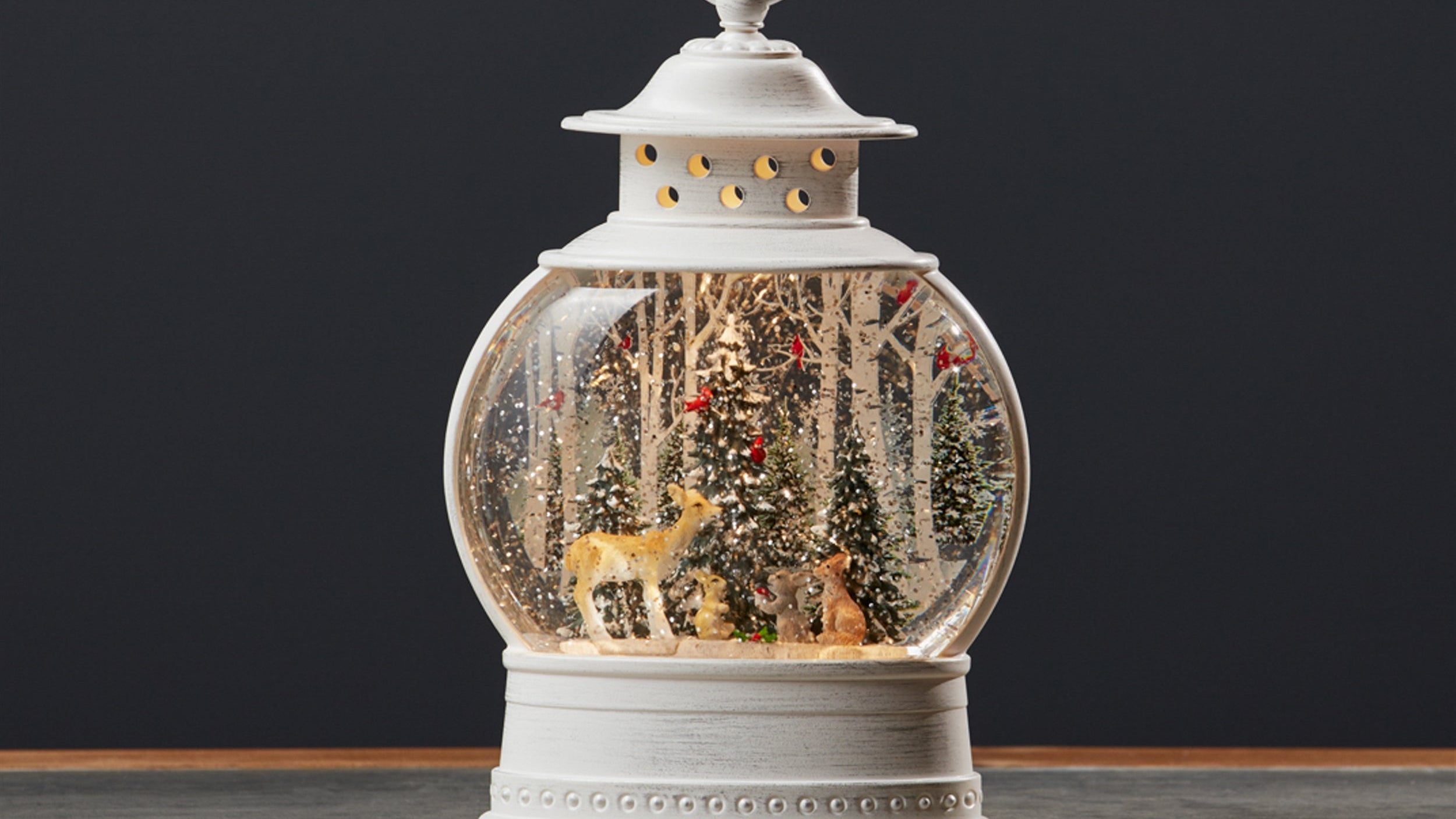 By Melrose Snow Globe Lantern w/Deer, 11.5"H, crafted from durable plastic with built-in LED lights that provide a warm, festive glow. Featuring a charming deer design, this tabletop snow globe brings seasonal charm to any indoor space. Equipped with a 6-hour automatic timer, it lights up for six hours and shuts off for 18 hours for effortless daily use. Operates with 3 AA batteries (not included) or the included USB cord, offering flexible placement on tables, mantels, or shelves. Lightweight and easy to display, it enhances your holiday décor or makes a thoughtful seasonal gift. Dimensions: 6 x 3.5 x 11.5".