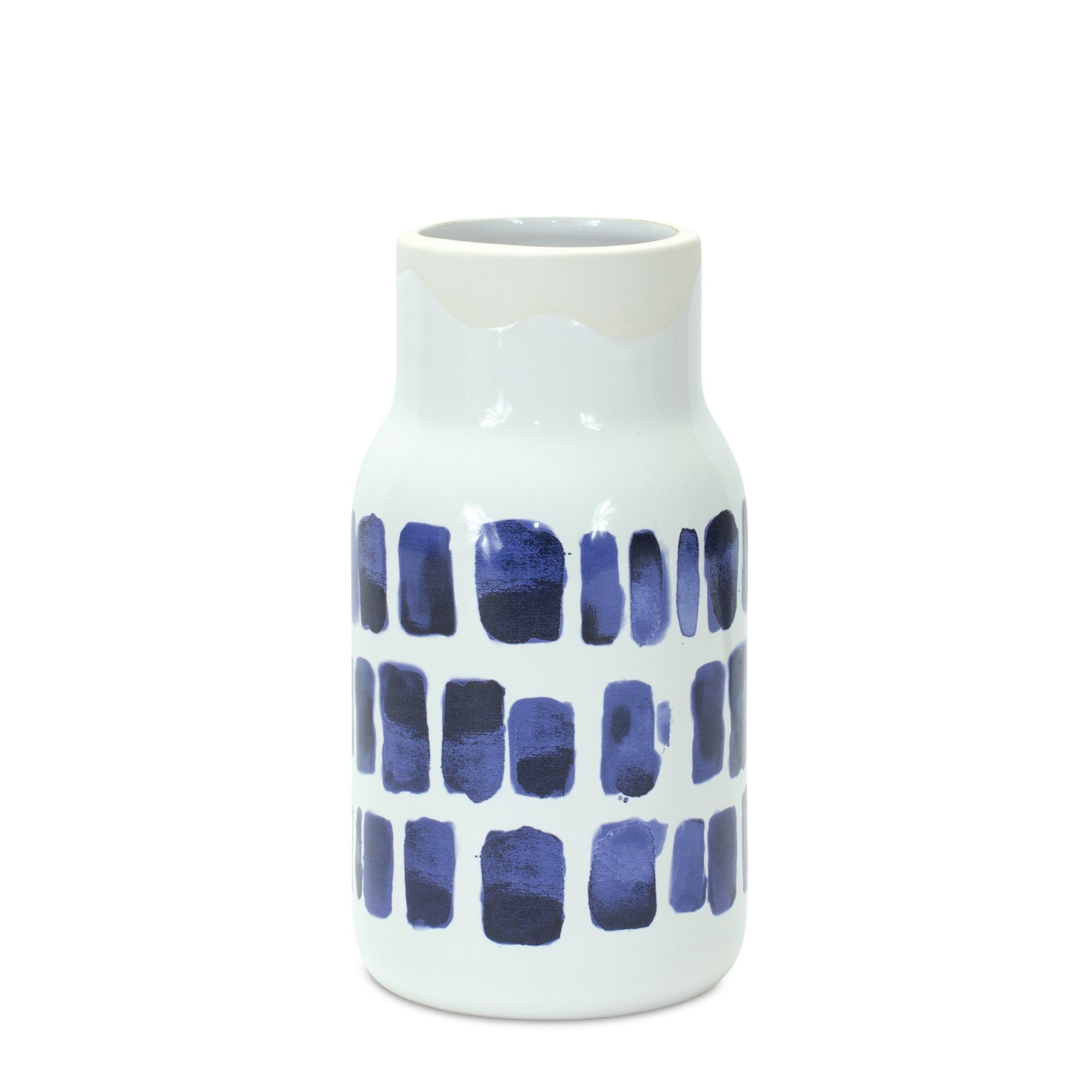 Decorative Ceramic Vase Set Of 2 Blue and White 10 Inch Vases for Modern Home Decor By Melrose