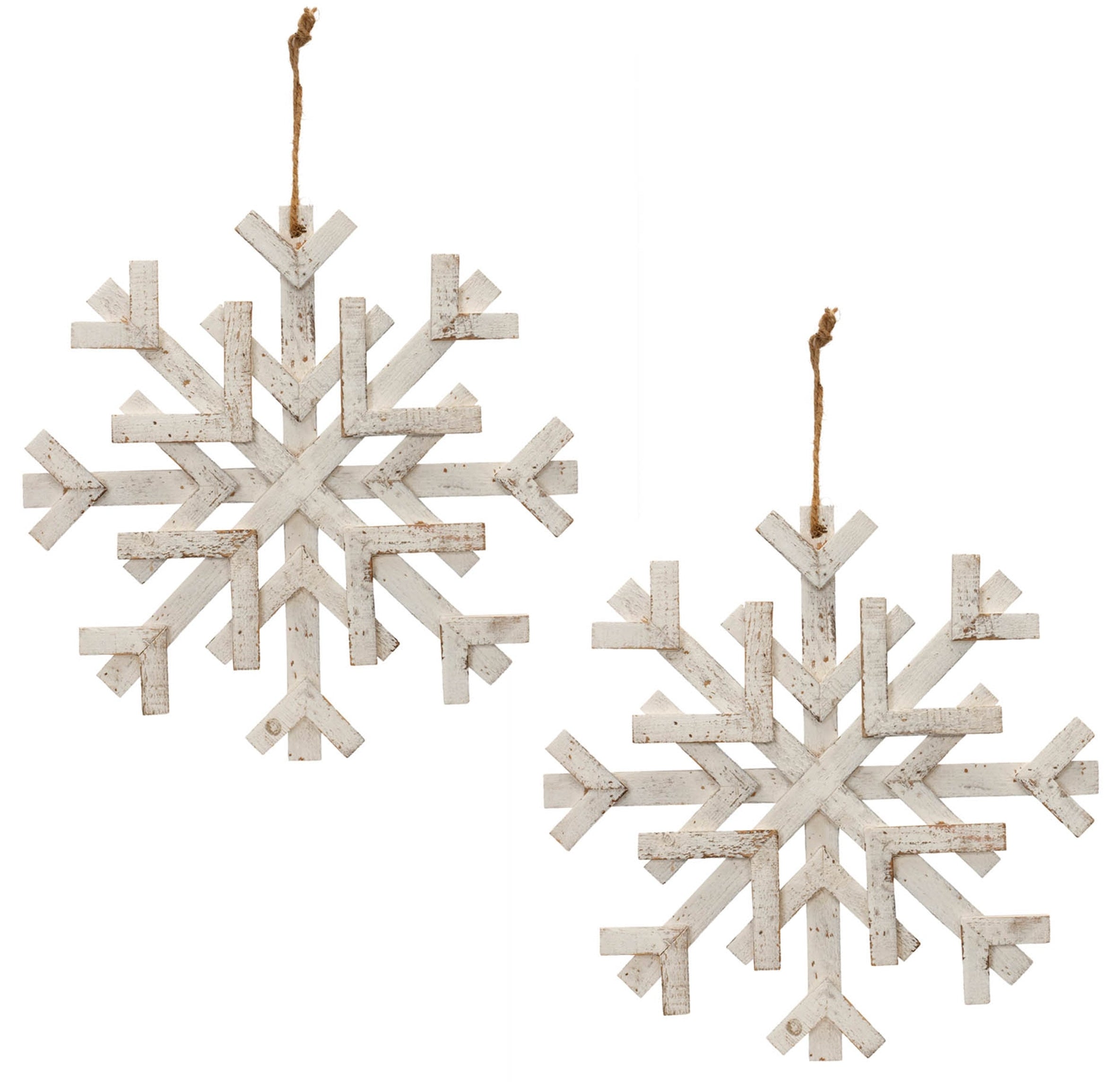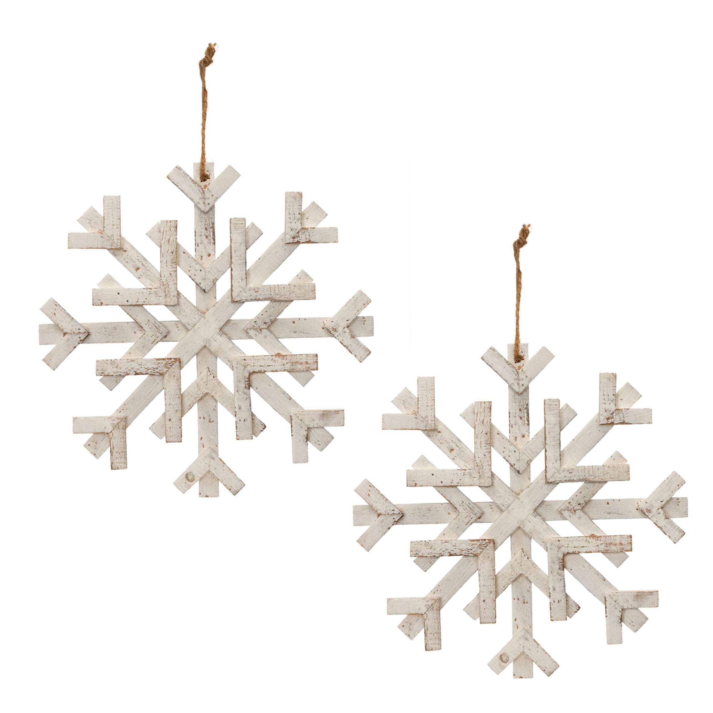 Distressed Fir Wood Snowflake Set – Set of 2, 16"D Rustic Christmas Wall Decor by Melrose