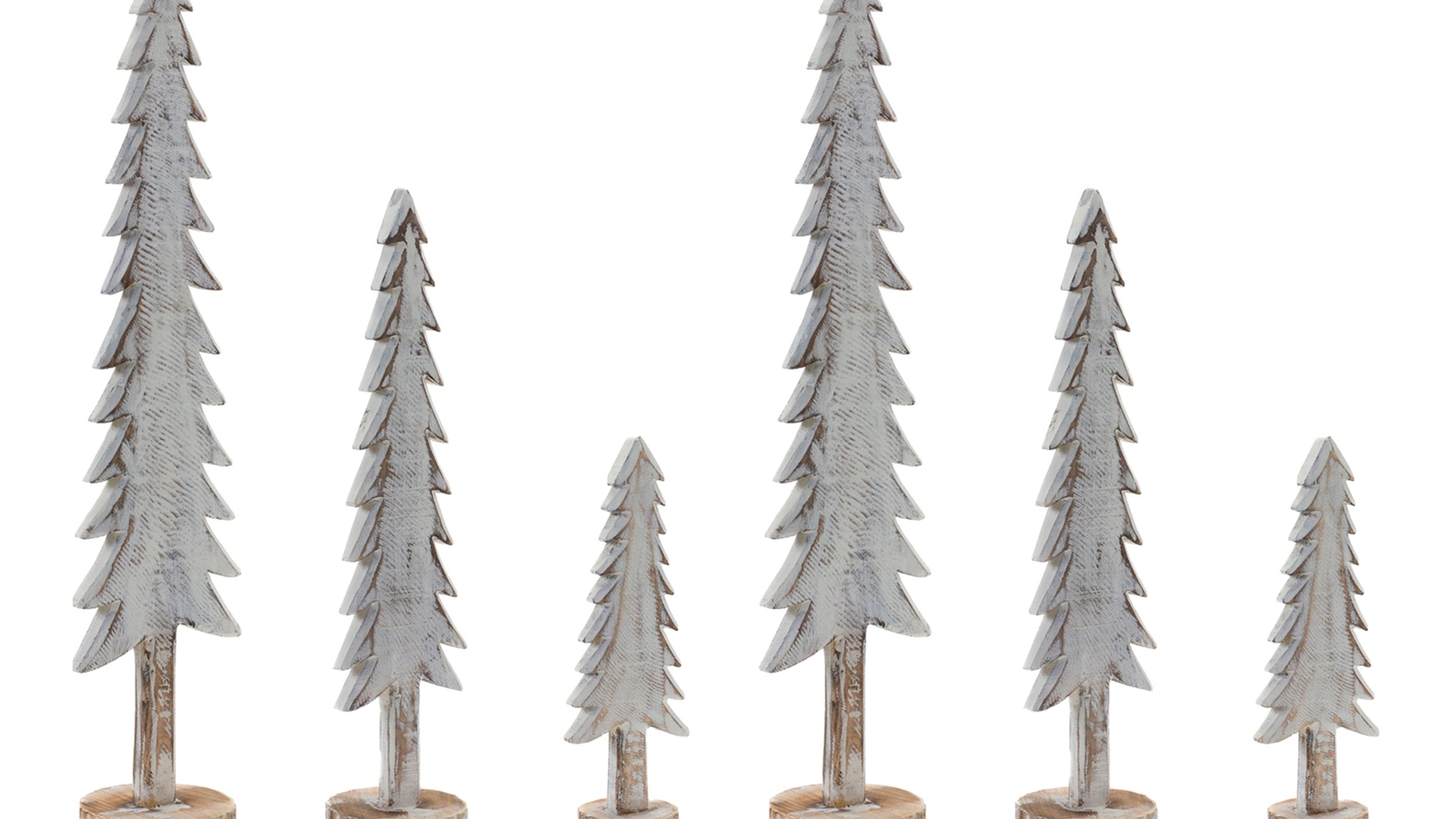 This set of three wooden Christmas trees by Melrose adds a rustic, minimalist touch to seasonal decor. Each piece features a whitewashed finish with natural wood tones, making the set easy to pair with neutral, Scandinavian, farmhouse, or traditional holiday styling. The three sizes—21.5", 16", and 10" tall—allow for versatile placement on mantels, dining tables, entry consoles, or tiered trays. Crafted from solid wood, these decorative trees are built to last and designed for effortless seasonal decorating. Whether displayed together or separately throughout your home, this set enhances your winter decor with simple, timeless holiday charm.