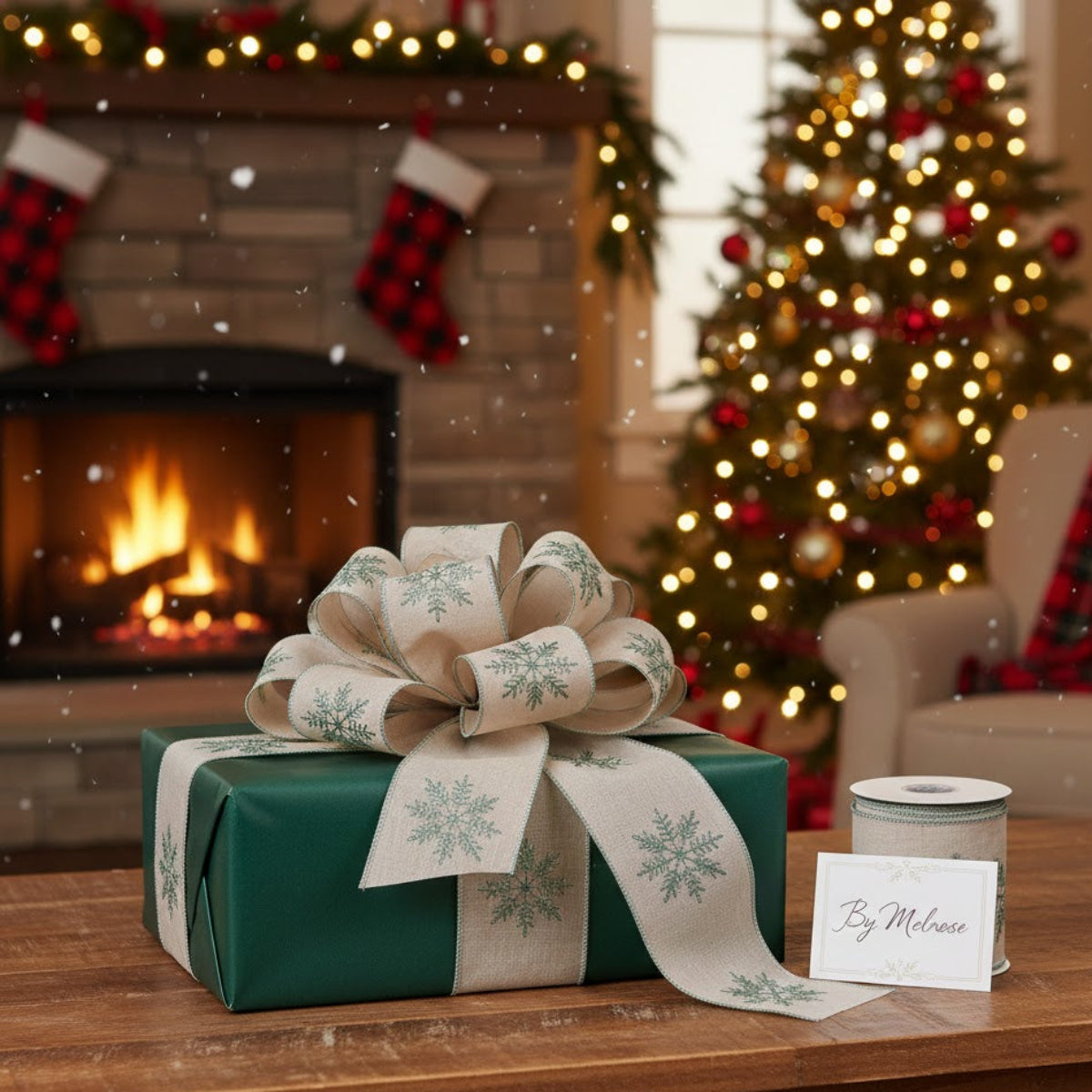 SKU - MEL-91730DSHoliday Wired Ribbon – Winter Snowflake Design – 4W x 5YD Brand Name By Melrose