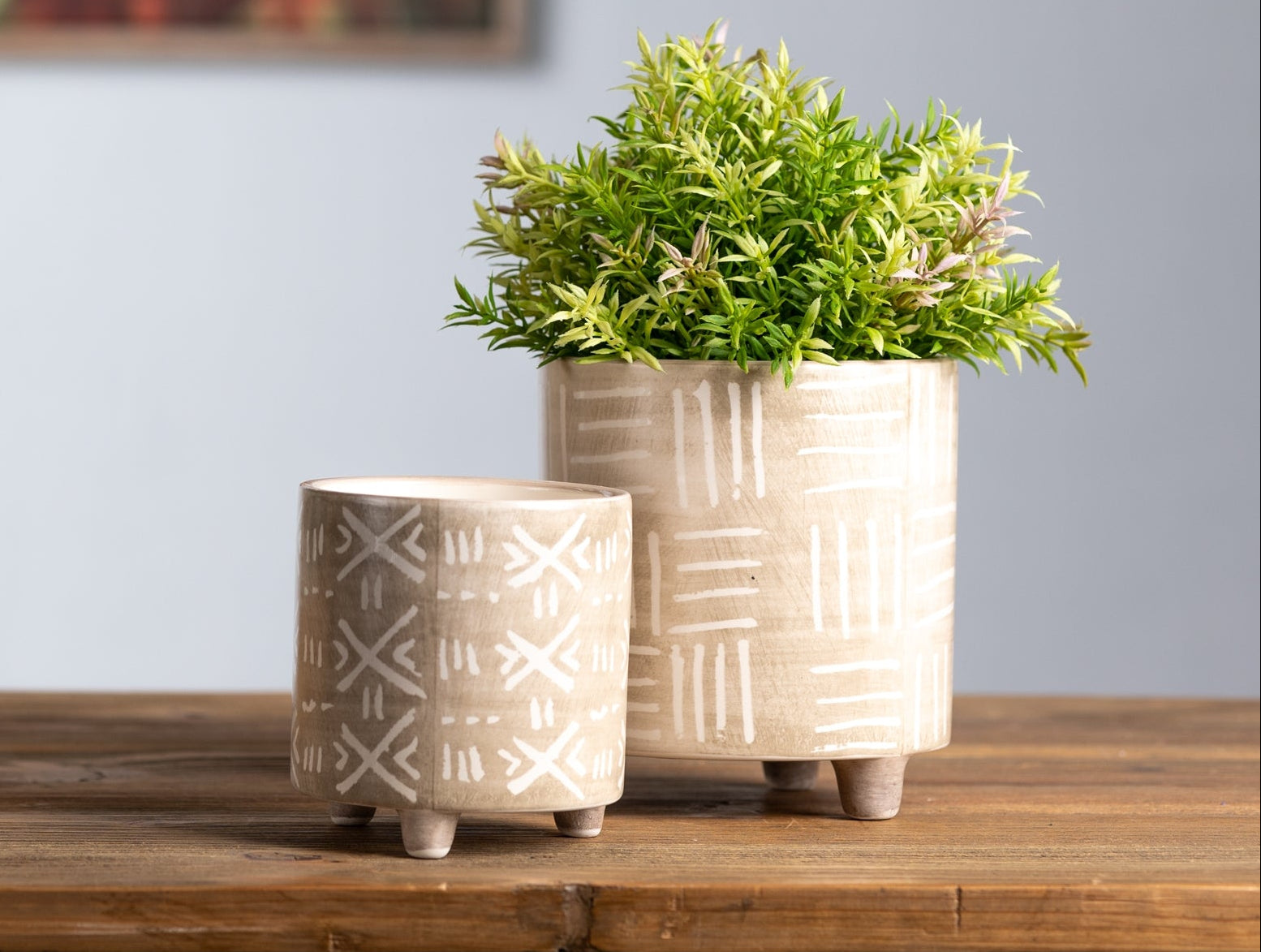 Footed Planter Pots With 6" White And Grey Dolomite Set Of 2 By Melrose