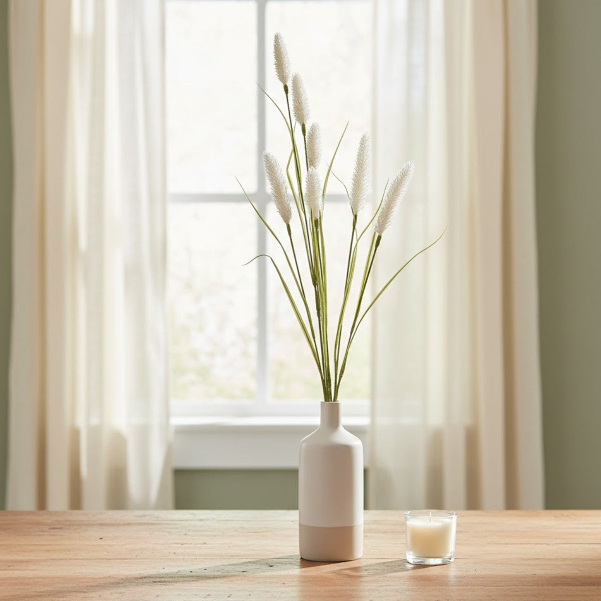 - Realistic green and white tones mimic natural foxtail foliage