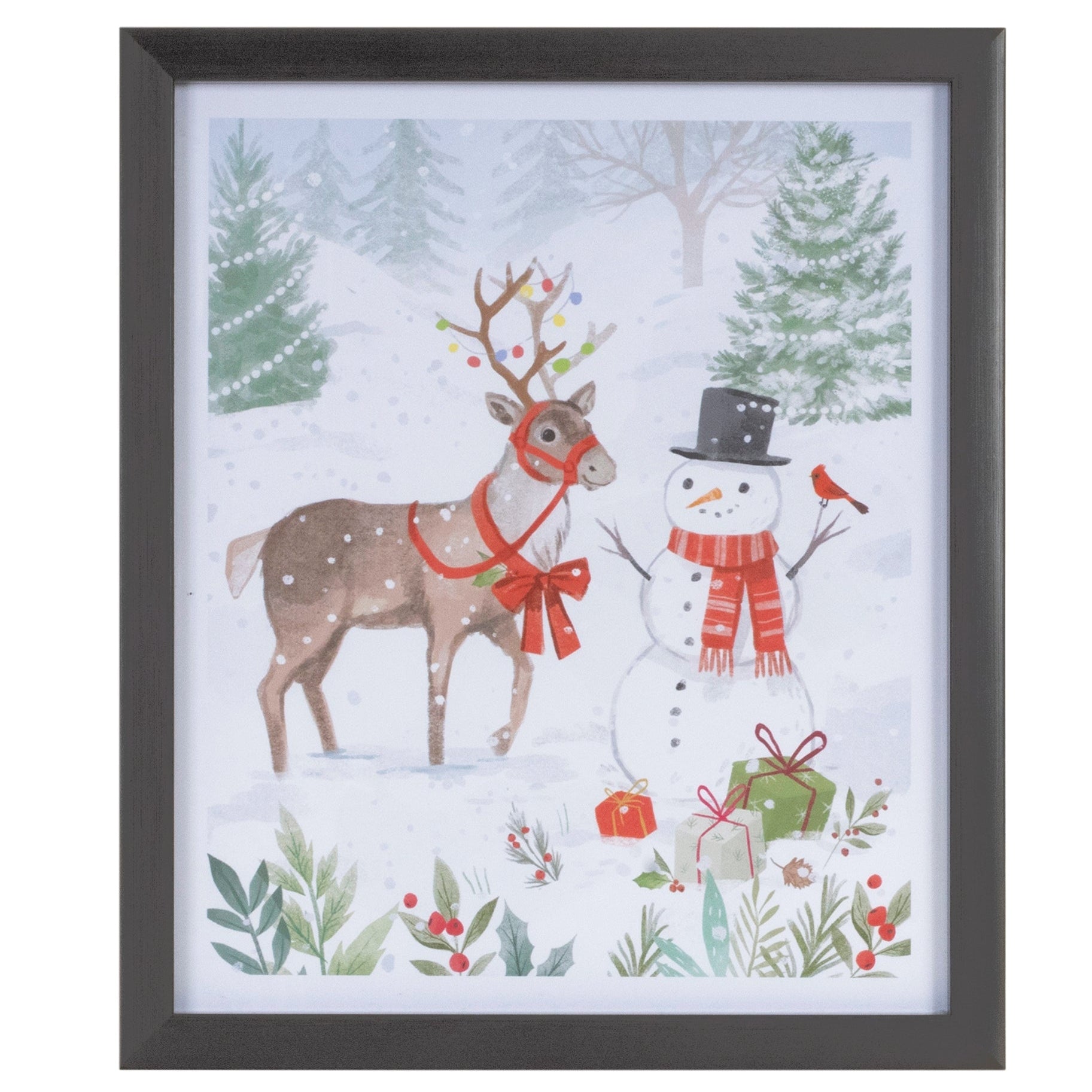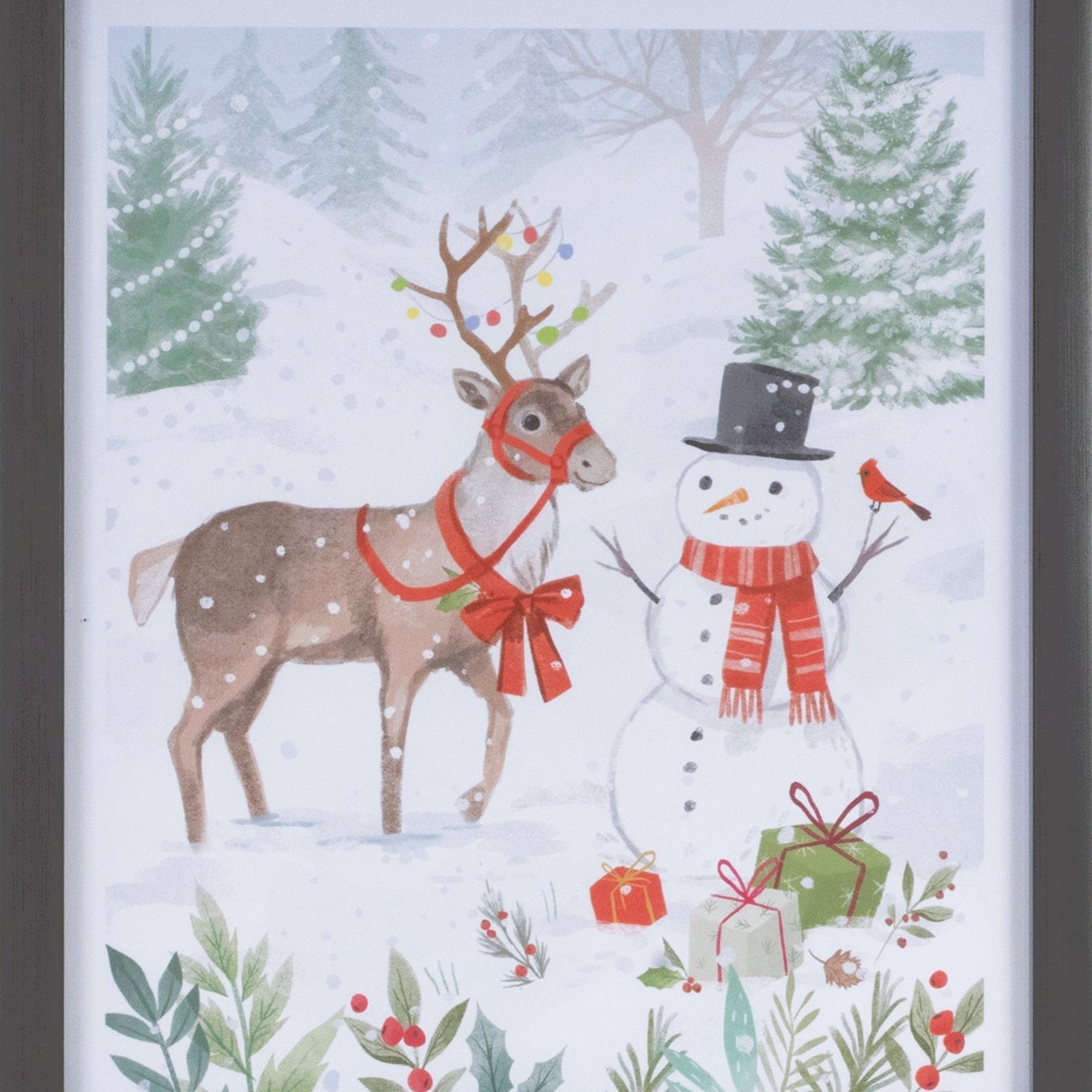 Framed Snowman and Reindeer Print –11"H Holiday Wall Decor by Melrose