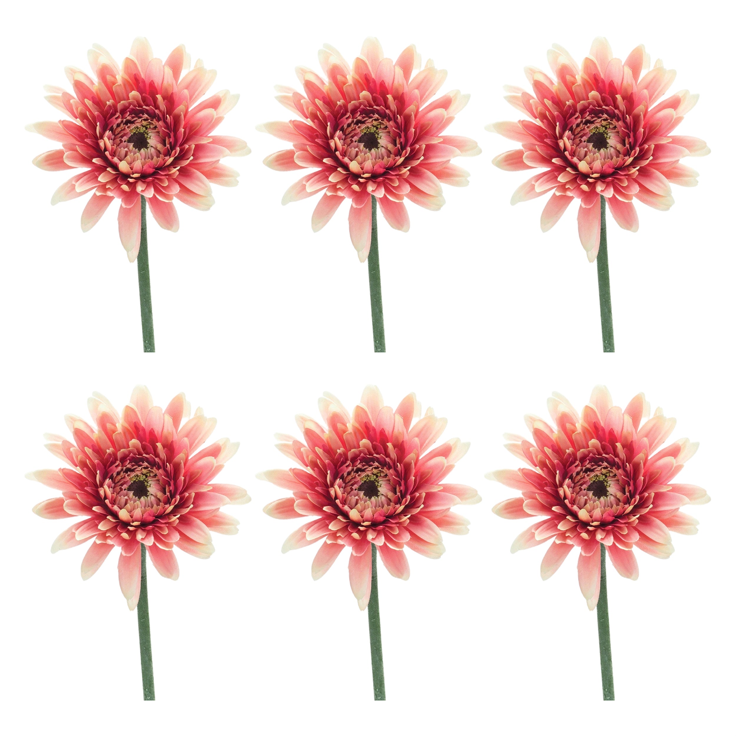 - Set of 6 faux Gerbera Daisy stems in pink and green