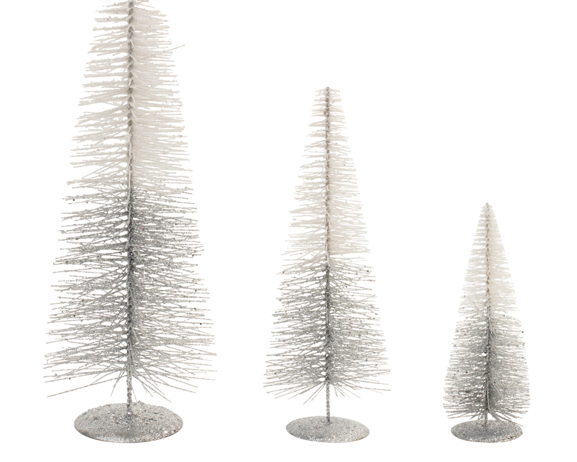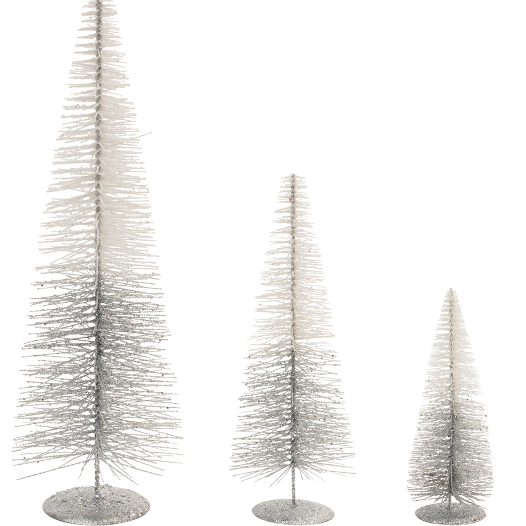 Glittered Ombre Bottle Brush Tree Set – Set of 3, Silver Christmas Tabletop Trees by Melrose