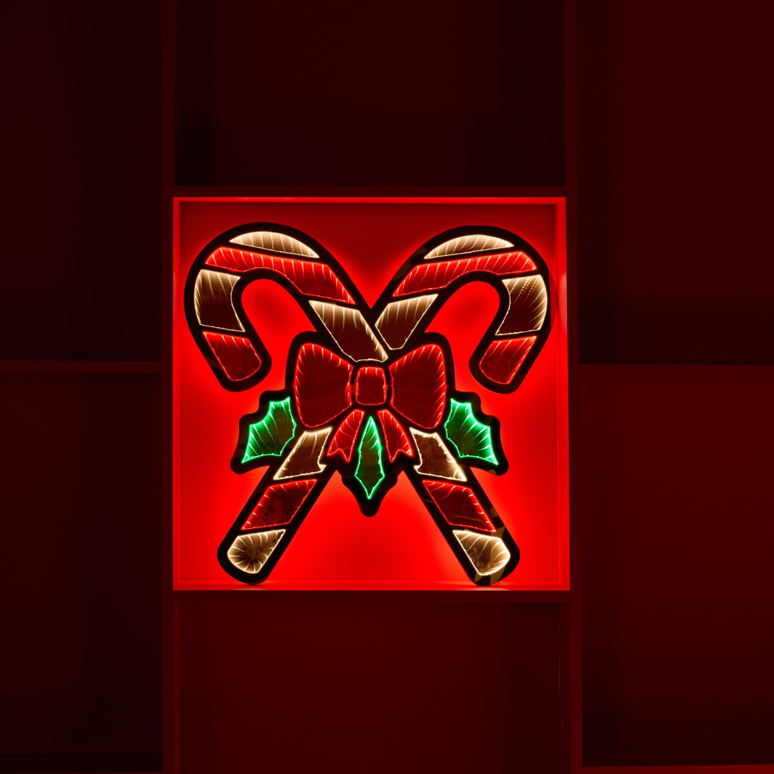 Bring festive cheer to your holiday decor with the Infinity Double Candy Cane by Melrose. Standing 22.5"H, this acrylic and EVA foam decoration features classic red and white stripes with holly and ribbon accents, creating a timeless holiday display. The UL-plug-in LED delivers bright, consistent illumination, perfect for tabletops, mantels, or shelves. Designed for indoor or covered outdoor use, this durable decoration is built to last for many holiday seasons. Ideal for traditional holiday themes, it adds warmth and charm to any space, making it a standout accent for family gatherings and festive celebrations.