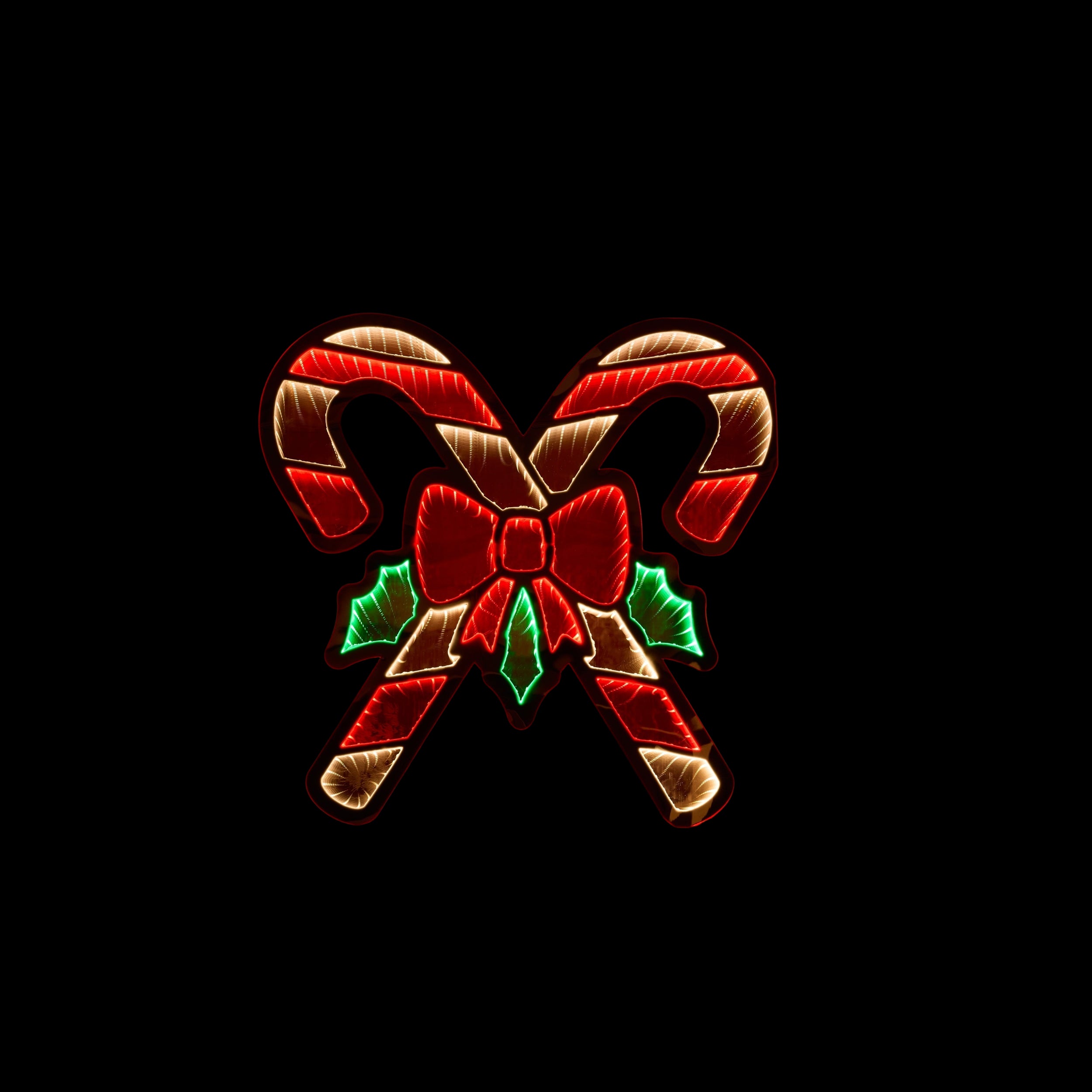 - Classic red and white candy cane with holly and ribbon accents