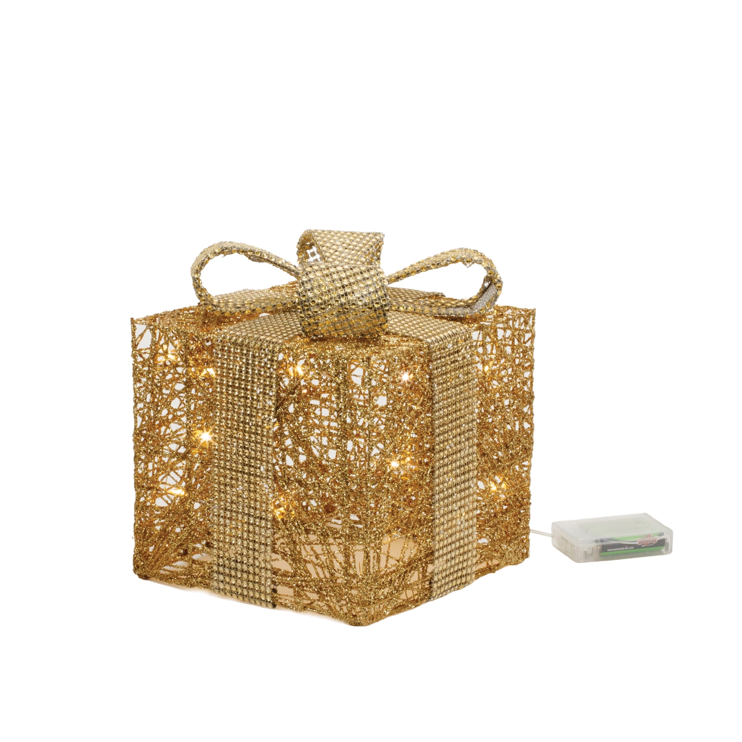 Bring festive charm to your holiday displays with the LED Package with Lights (Set of 3) by Melrose. This set includes three cotton packages measuring 7"H, 9"H, and 11"H, each featuring built-in LED lights that emit a soft, warm glow. Made with durable cotton and plastic, these pieces are designed for indoor or covered outdoor use, ensuring lasting enjoyment through many holiday seasons. The battery-operated design (3 AA batteries not included) allows flexible placement on mantels, tables, or shelves. Perfect for luxury or glam holiday decor themes, this LED set adds a cozy and festive touch to any space.