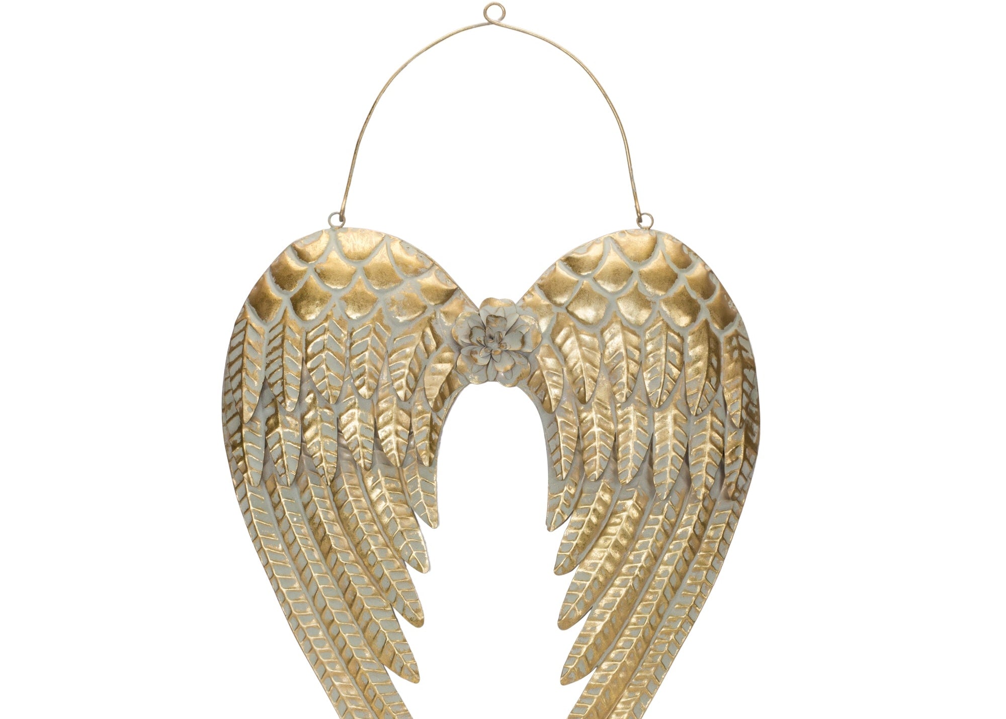 SKU - MEL-87276DS- Elegant brushed gold metal wings with detailed feather design