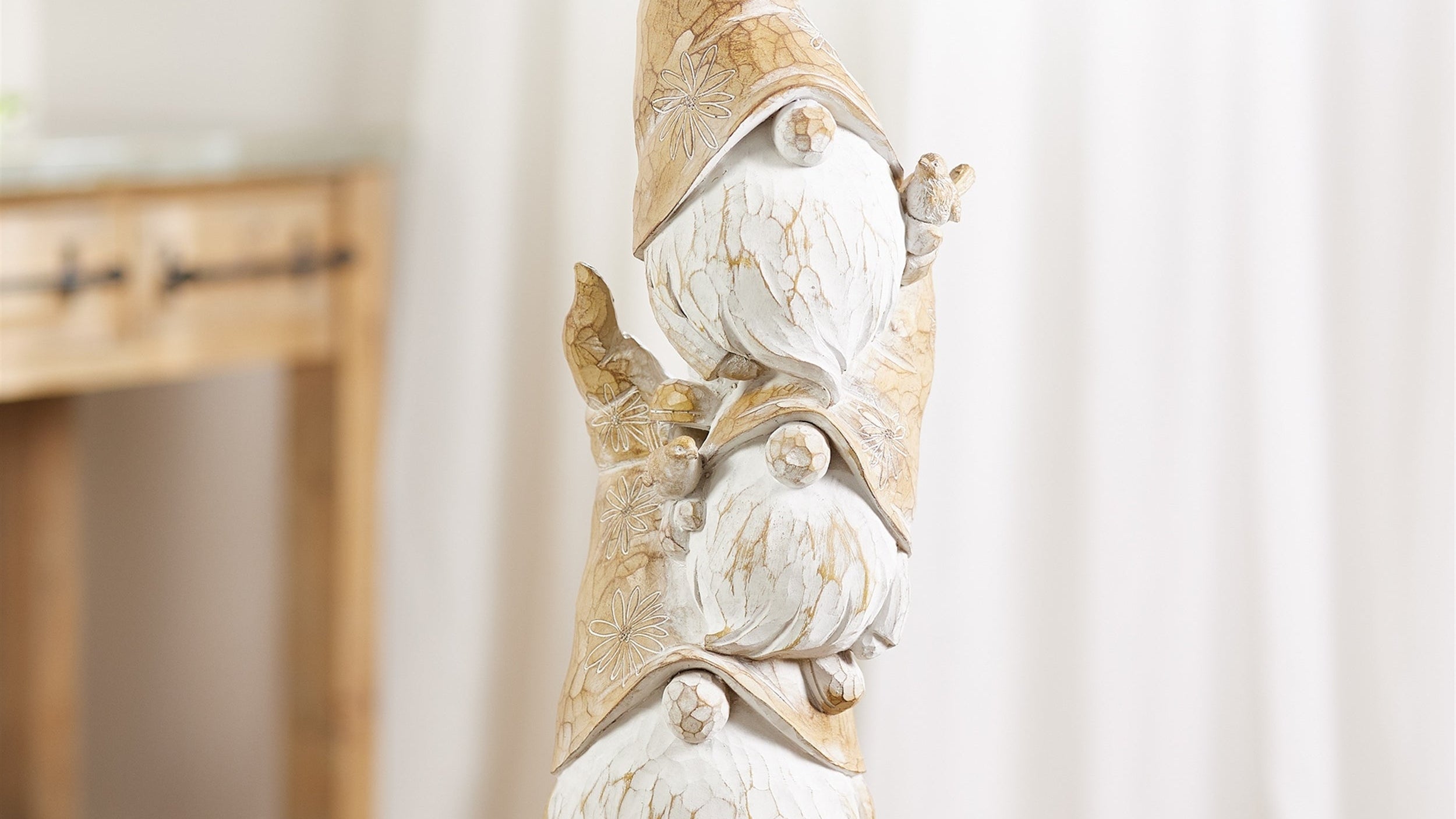 Gnome Stack Statue – Resin Decorative Accent – 23.25 Inch Height – Brown White Traditional