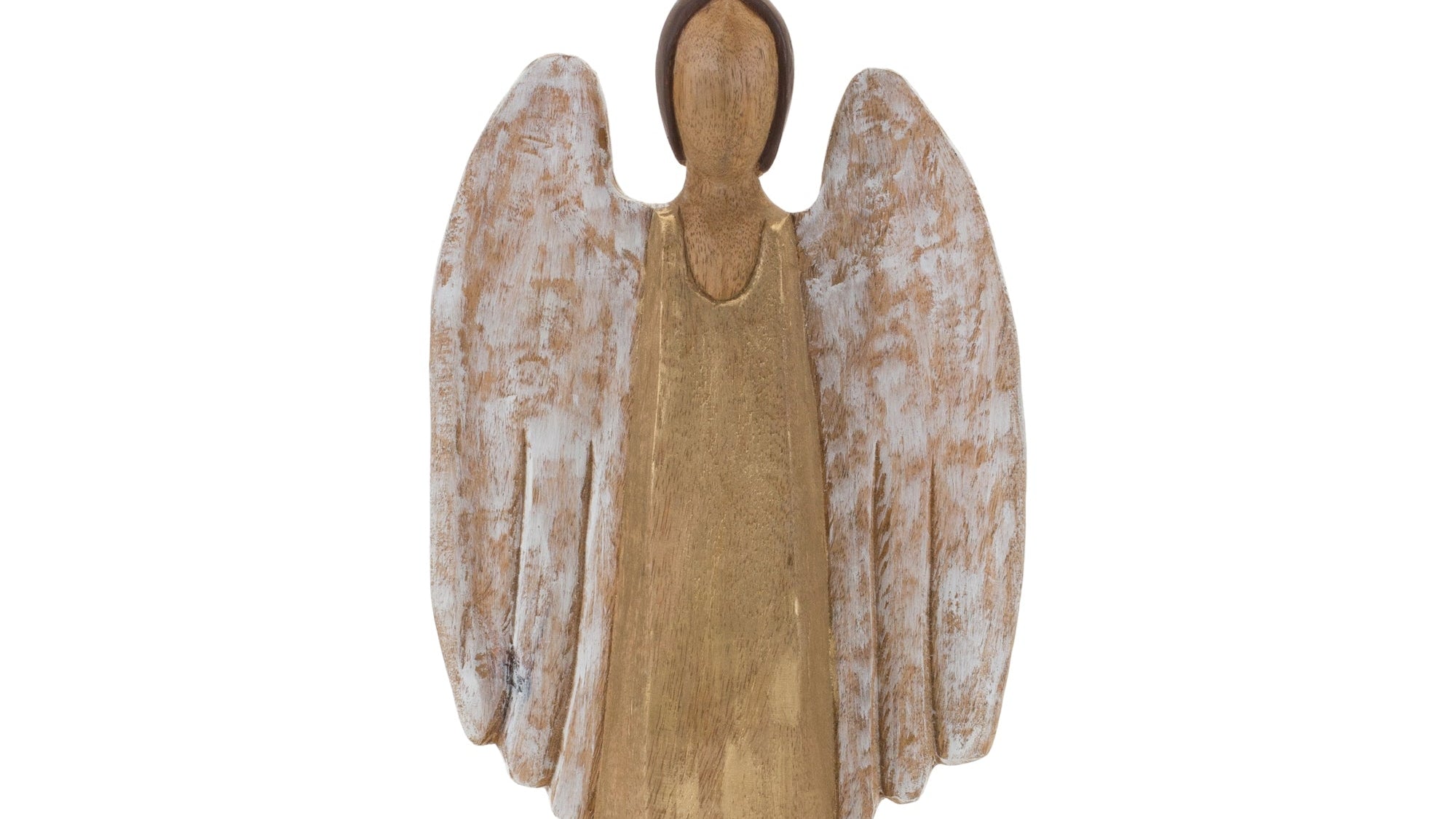 Angel Statue – Mango Wood with Distressed White Wings – 18" for Holiday or Rustic Decor – By Melrose