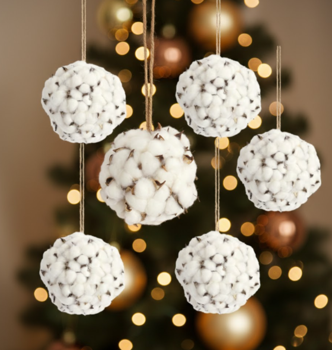 Decorative Cotton Orb Set Foam Polyester – 6.5" Hanging Home Accent by Melrose