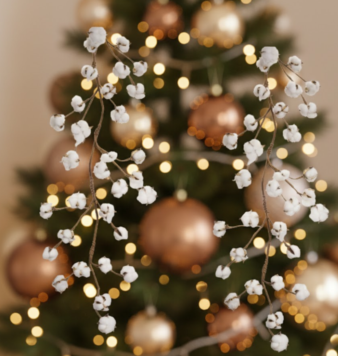 Cotton Twig Garland Set Polyester – 5.5' Rustic Decorative Accent by Melrose