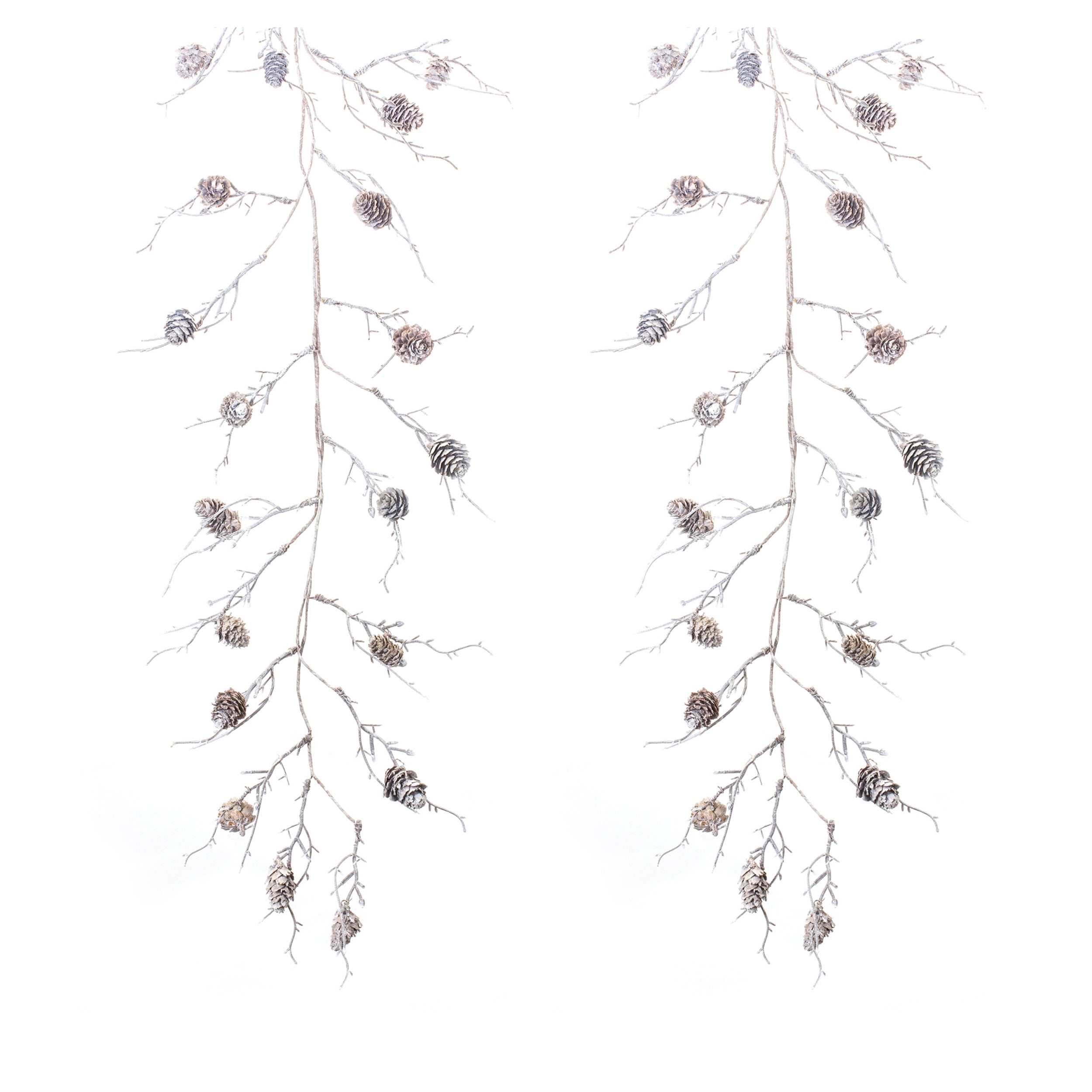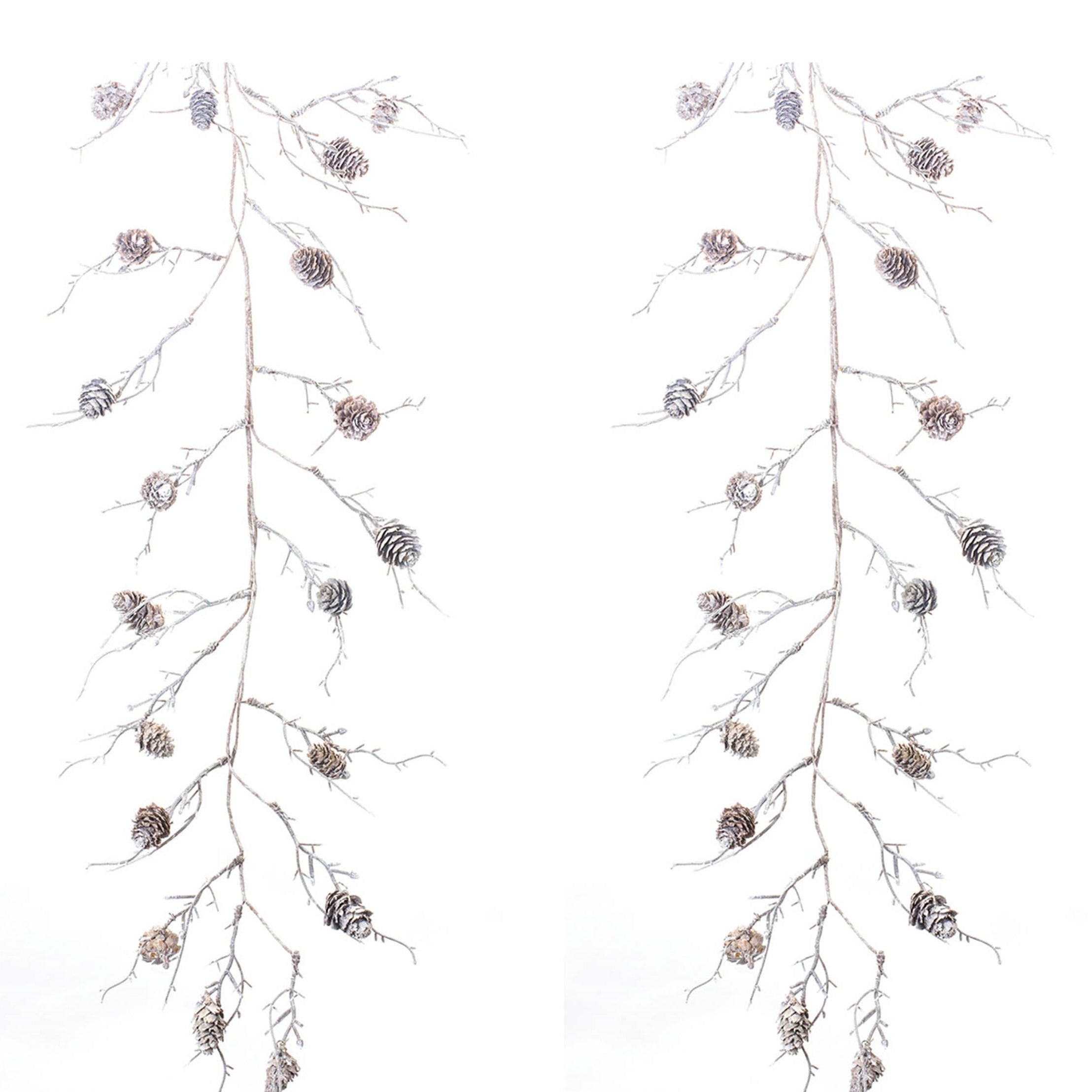 SKU - MEL-87400DS- Set of two matching flocked pinecone twig garlands
