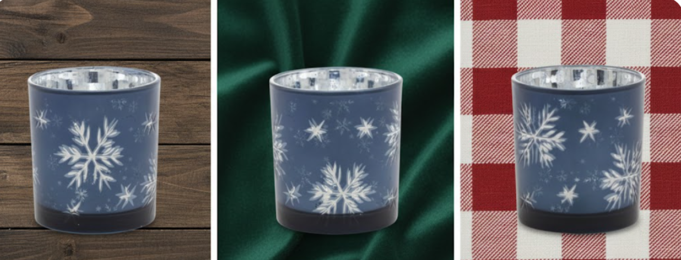 Frosted Glass Snowflake Votive Candle Holders Set – 3 Piece by Melrose