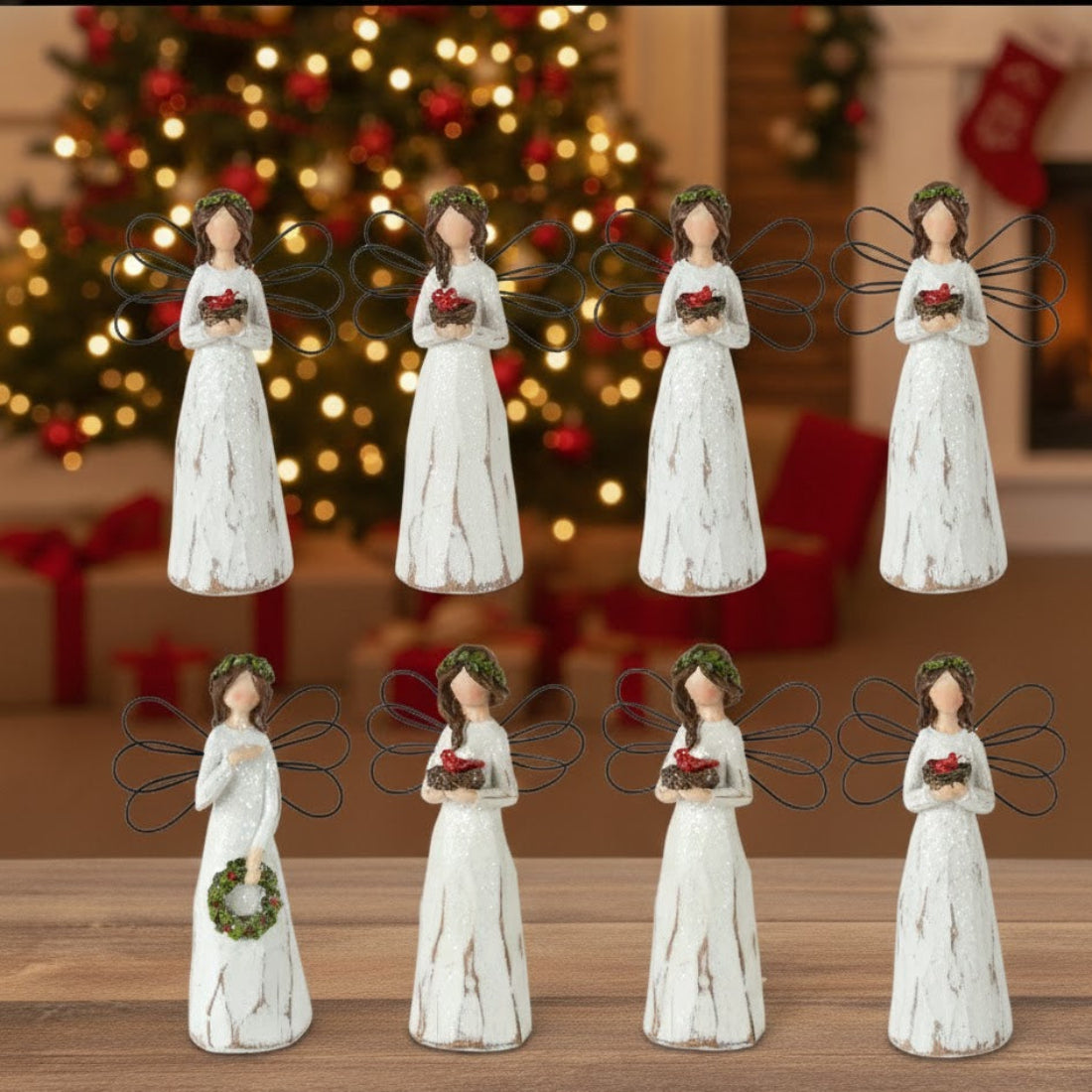 Add a heavenly touch to your home this holiday season with the beautiful set of Angel Figurines. Featuring two assorted designs and six total pieces, the carved design paired with the wire wing accent is the perfect combination to create a stunning Christmas display. The quality polyresin and metal composition is sure to last for seasons to come. Display the pieces together to make a statement, or display along with other decor to spread the holiday cheer.