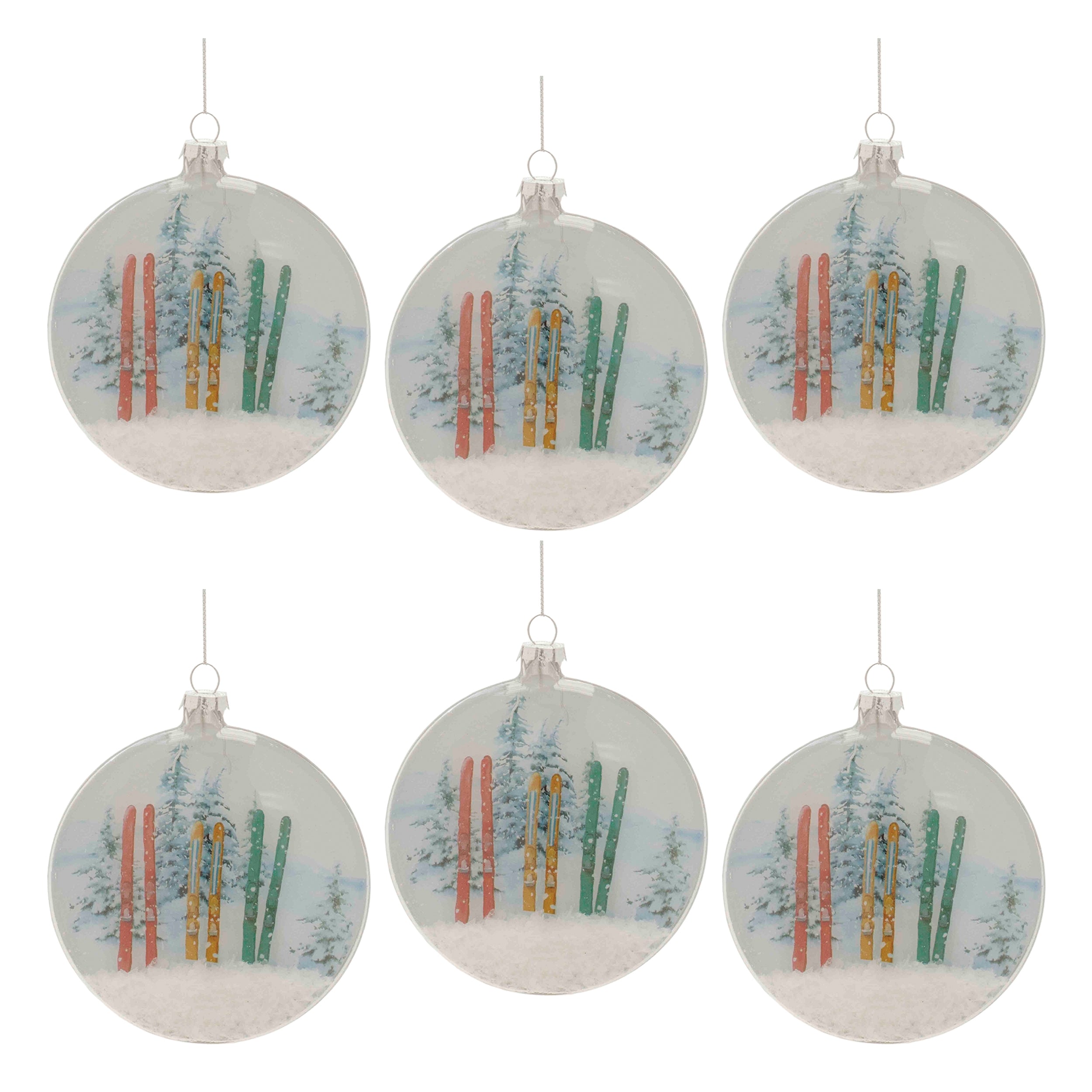 Glass Ski & Snow Disc Ornaments (Set of 6) – 4.25"H Christmas Tree Decor by Melrose
