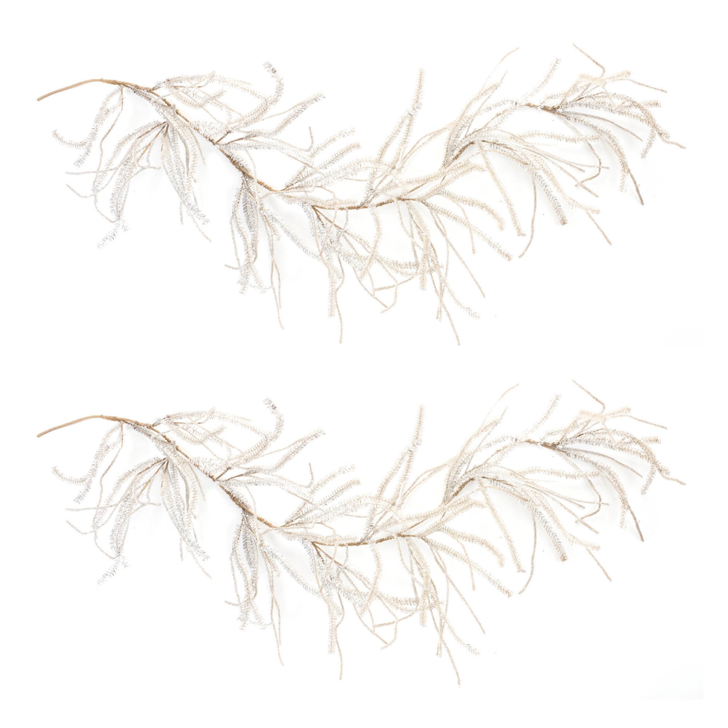 Glittered Silver Pine Garland – 60"L Christmas Decorative Garland, Sparkling Holiday Accents (Set of 2) by Melrose