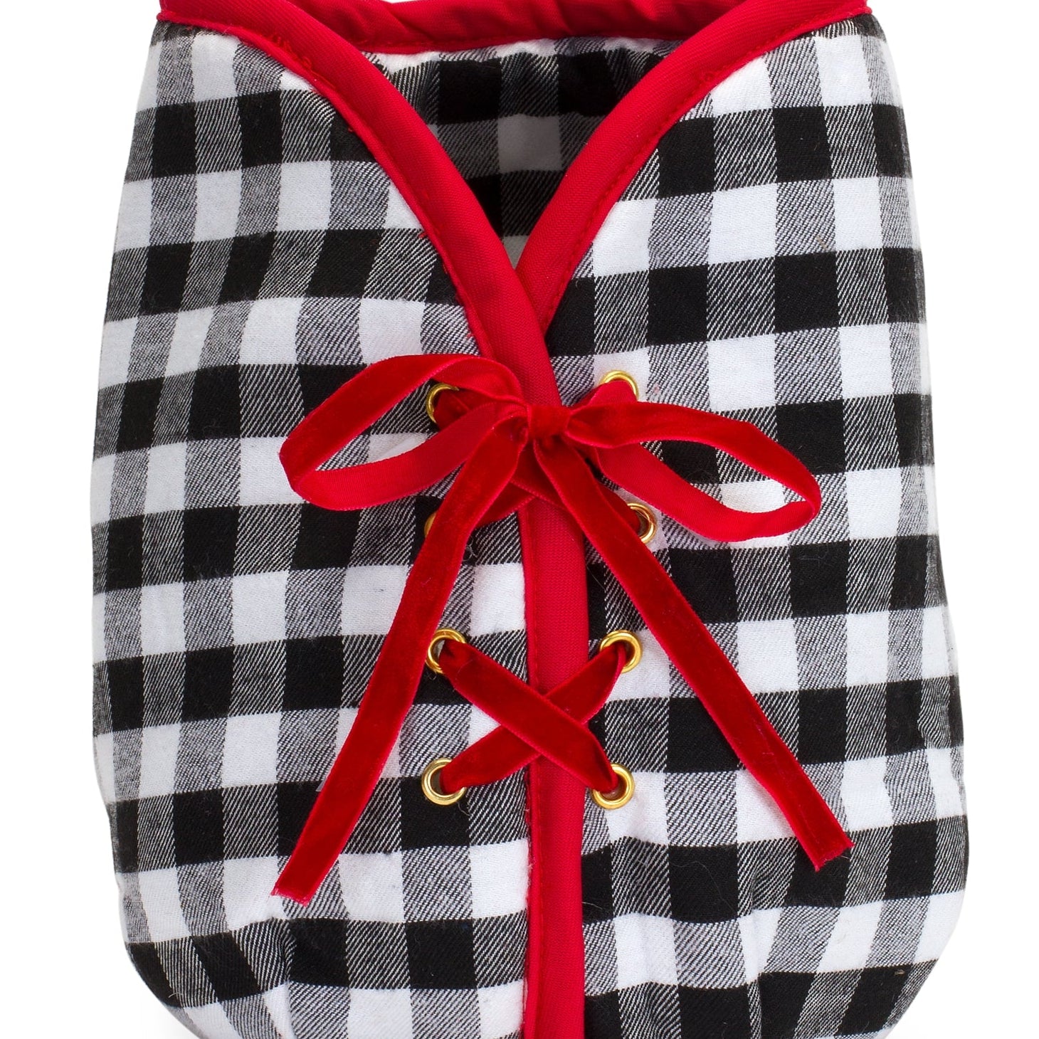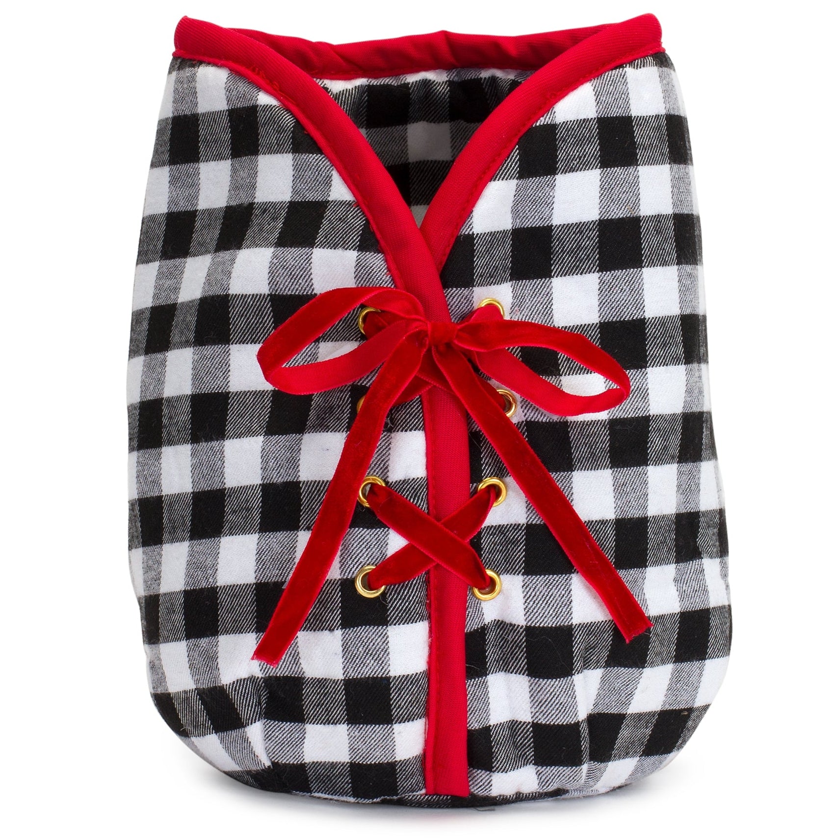 Plaid Christmas Tree Pot Cover – 9"H in Black and White Gingham with Red Trim by Melrose