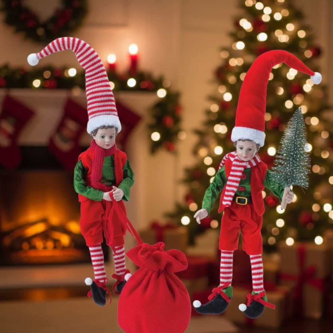 Christmas Polyester Elf Figurines Set of 2 – Holiday Display by Melrose