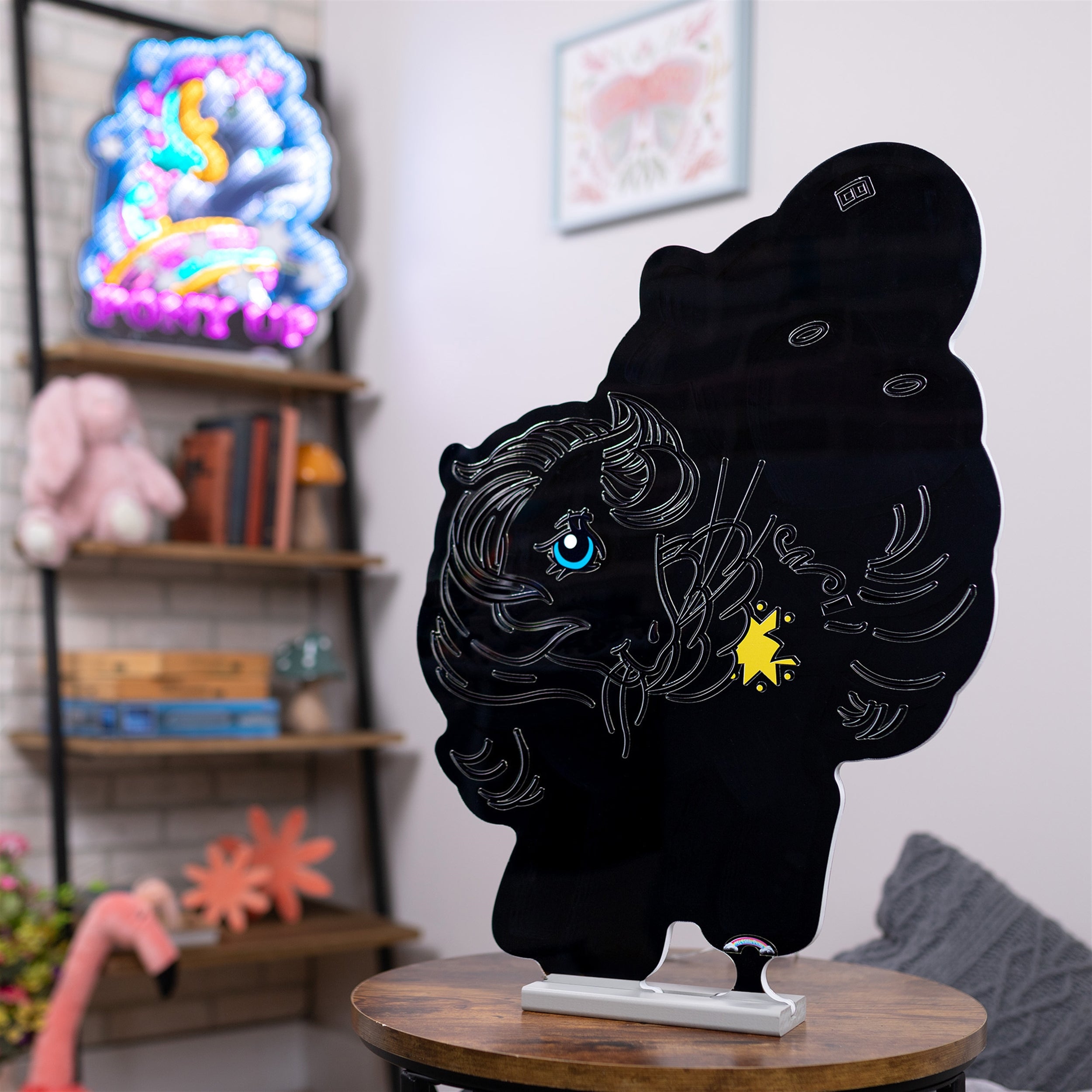 Brighten any room with the My Little Pony Starshine with Balloons Ekkolight, a vibrant plug-in LED display featuring Starshine surrounded by colorful balloons. Designed in cheerful white, pink, orange, and blue tones, this acrylic, PET plastic, and EVA foam light adds a touch of joy and celebration to bedrooms, playrooms, or themed spaces. The infinity mirror LED effect creates a glowing, dynamic display that enhances the character’s whimsical energy. With a UL plug-in design for simple setup, this decorative light brings friendship, color, and My Little Pony charm to any space. Perfect for fans and collectors, its durable construction ensures long-lasting, magical illumination.