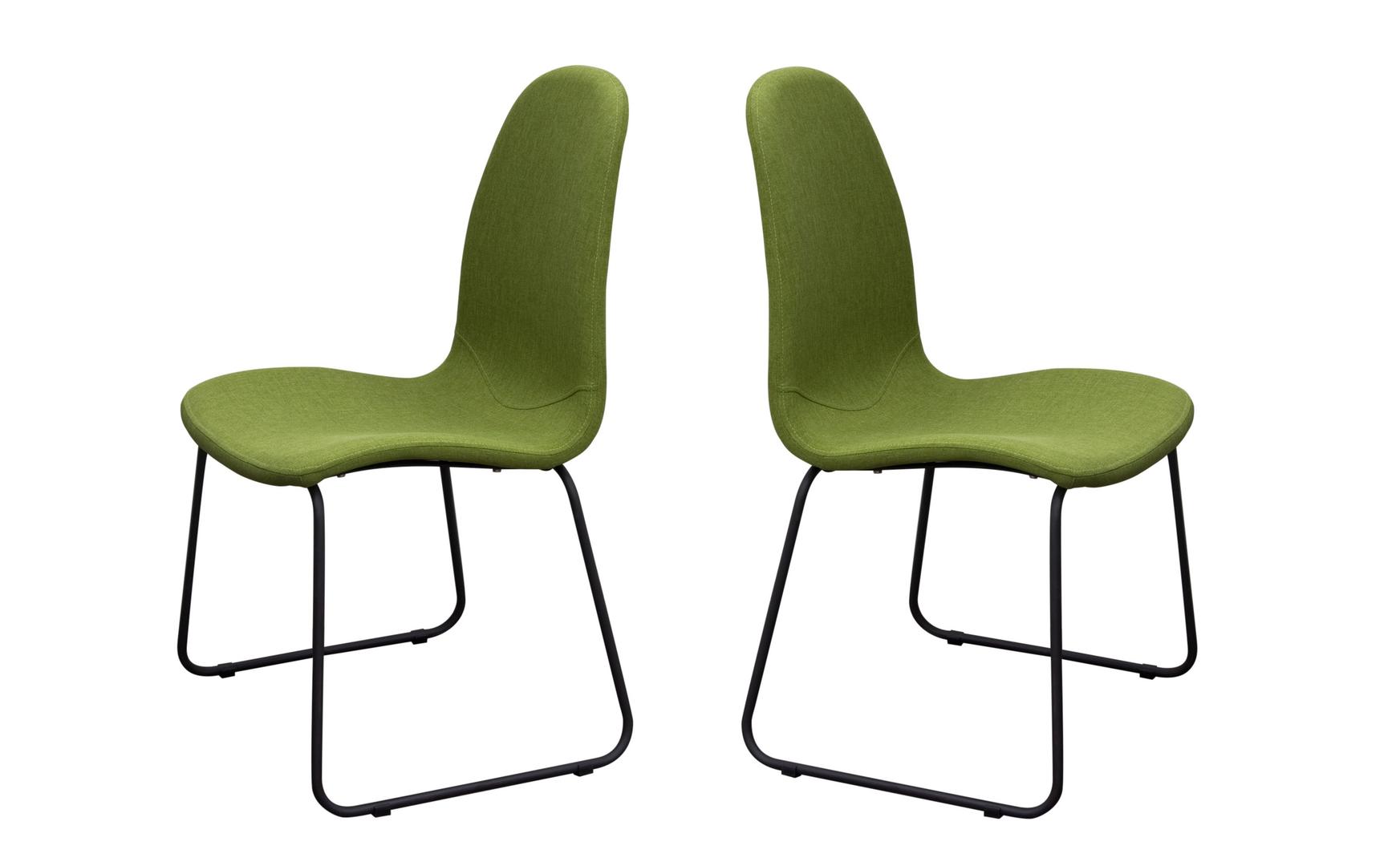 Benzara Fabric Upholstered Dining Side Chairs with Metal Sled Legs, Set of 2, Green and Black