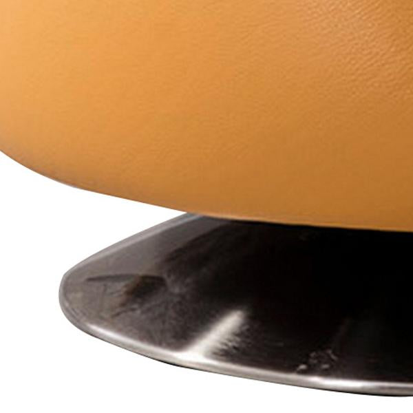 Infuse contemporary elegance in your living space with this appealing Accent Chair with 1 Matching Pillow, featuring minimal aesthetics. Upholstered in yellow leather, it features highly padded round seat and Open design curved back complemented with stitched details that add depth to its design while the chrome finish metal base offers stability.