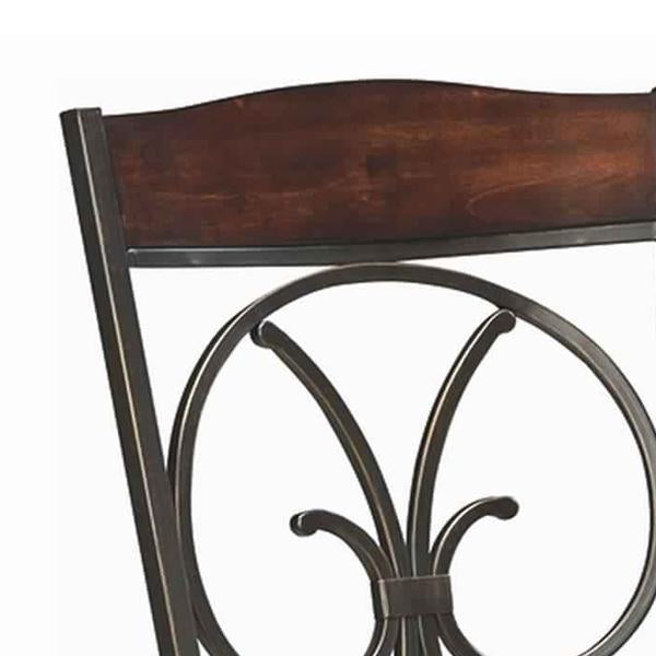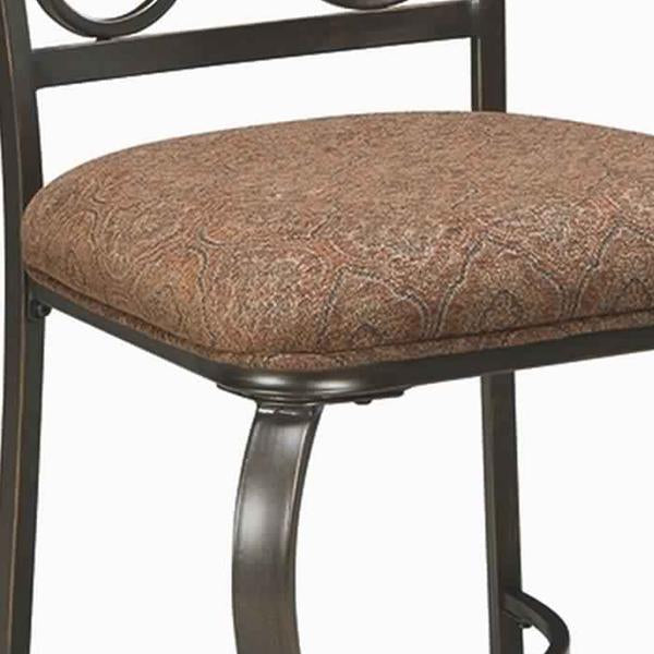 Benzara Scrolled Design Back Metal Side Chair with Curved Legs, Silver and Brown