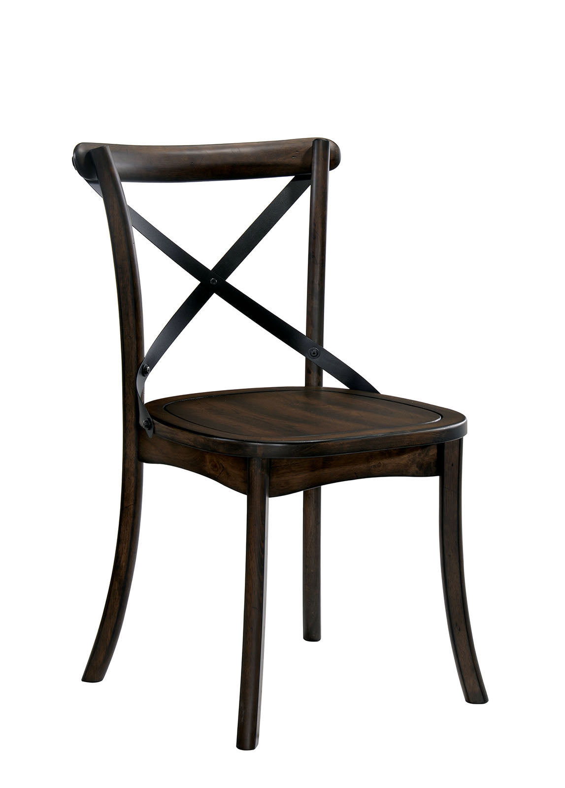 Offering a touch of a fusion of industrial and transitional, this side chair made of solid wood features a beautiful brown color finish, X-cross back supports, and round curled legs a nod to modern farmhouse influences. Pair it with your sofa set in the living room, with a dining table or create a cozy corner in your bedroom, this chair is versatile and makes a statement of its own and it also comes in a pack of two. Dimension:20``W X 21``D X 34 1/4``H, (SEAT HT: 17 7/8``, SEAT DP: 16 1/2``)