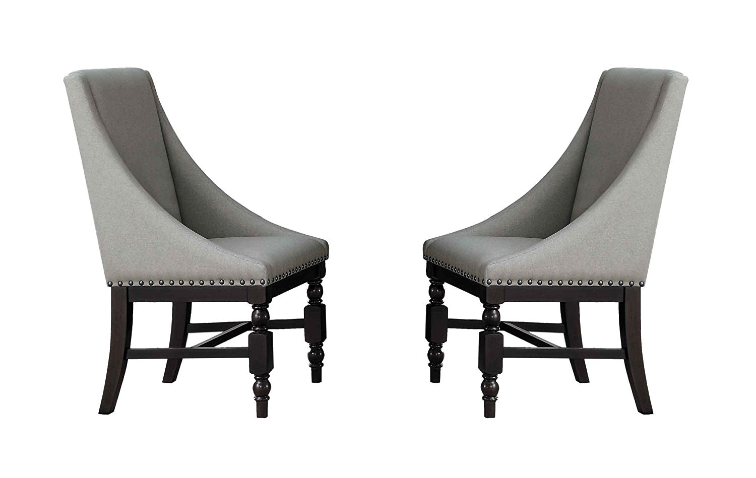 Benzara Wood & Fabric Dining Side Arm Chair with Nail Head Trim, Neutral Grey (Set of 2)