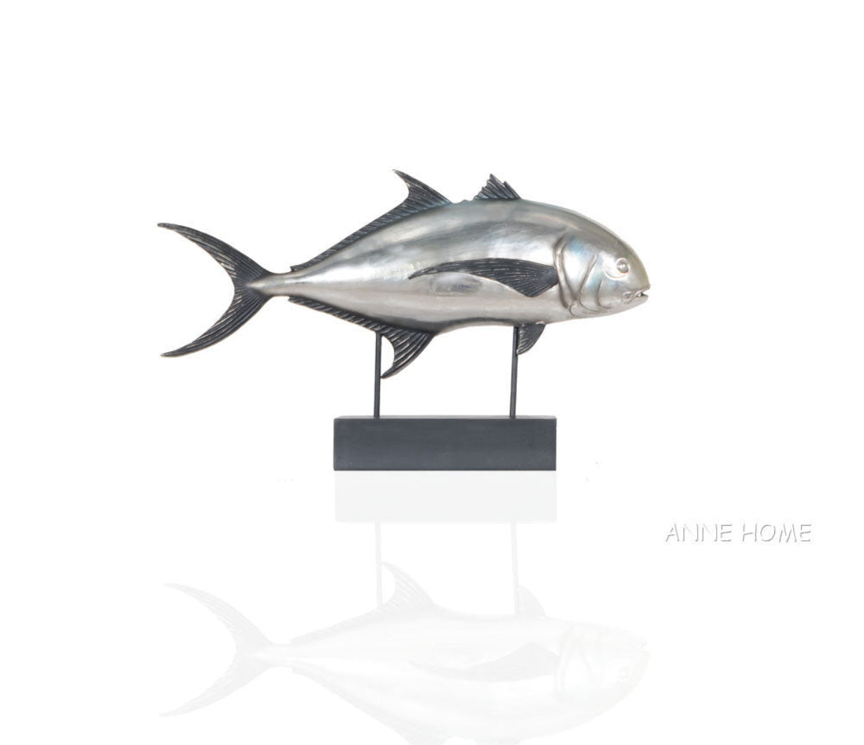 Anne Home Tuna Fish Statue 25" – Handmade Silver Electroplated Fish Sculpture