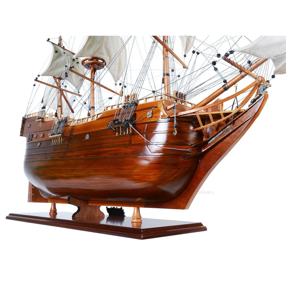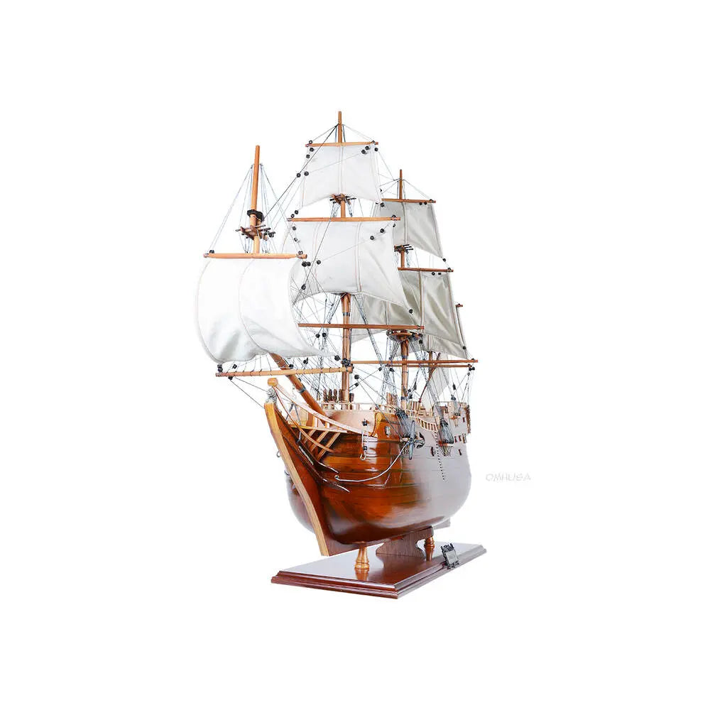 This 32-inch Arabella Ship Model from the Admiral Line is a fully assembled, handcrafted replica of the historic 17th-century flagship that carried Governor John Winthrop and Puritan settlers to Massachusetts in 1630. Expertly built by artisans using premium woods, it captures the timeless design and craftsmanship of the original vessel. Each model features precise plank-on-frame construction, intricate rigging, and hand-finished woodwork that reflects authentic maritime artistry. Mounted on a solid wood base with brass nameplate, this elegant ship makes a distinguished display piece for collectors, history enthusiasts, or anyone who appreciates nautical craftsmanship.