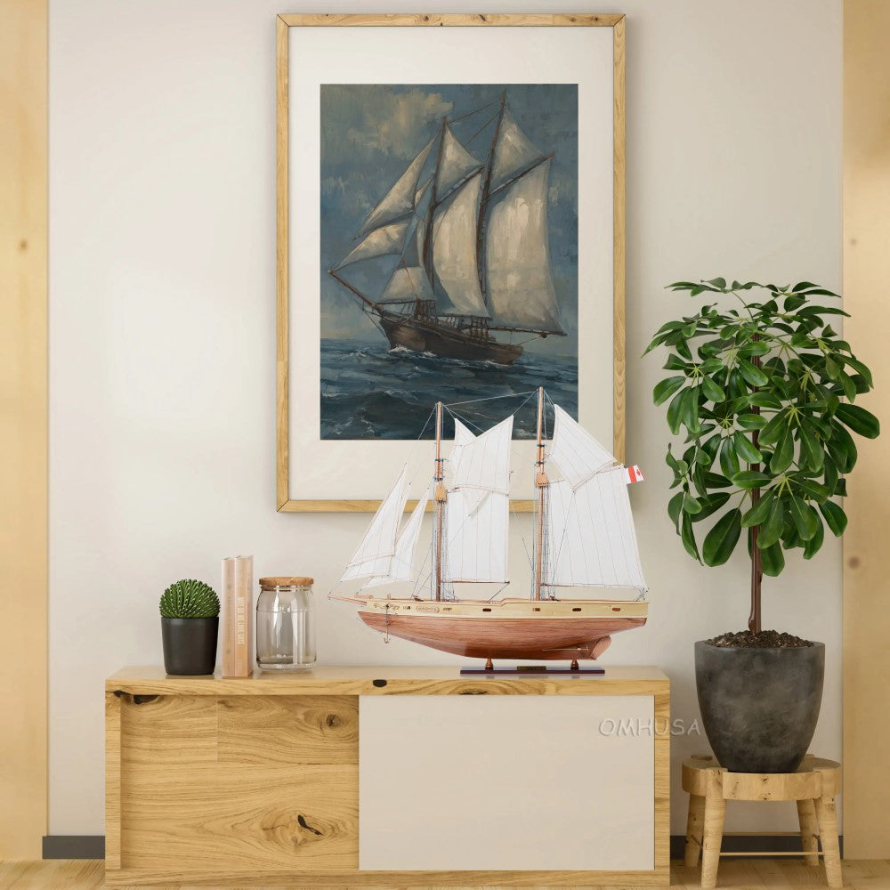 Bluenose II Fully Assembled Wooden Sailboat Model – Natural Finish