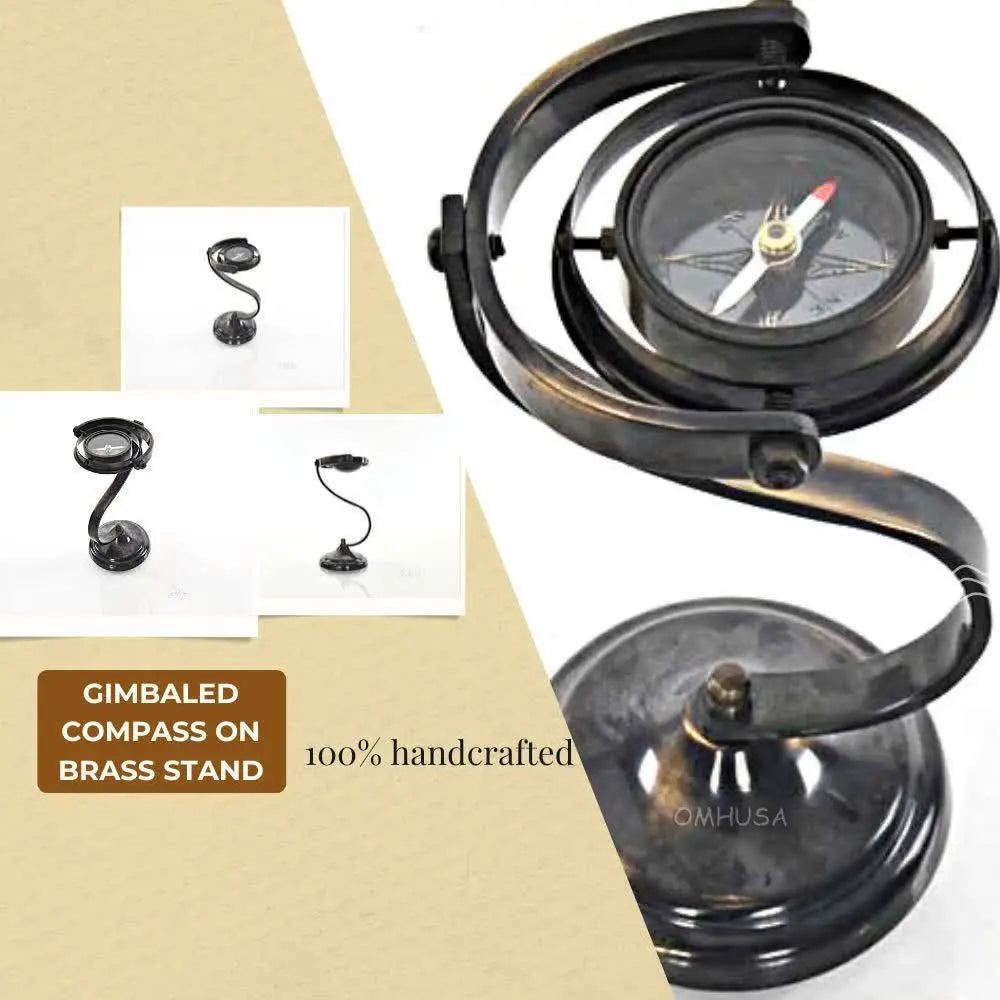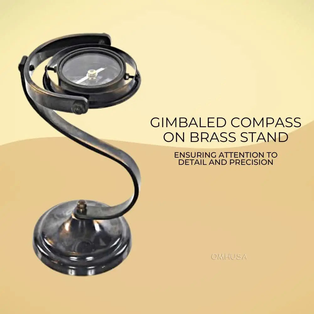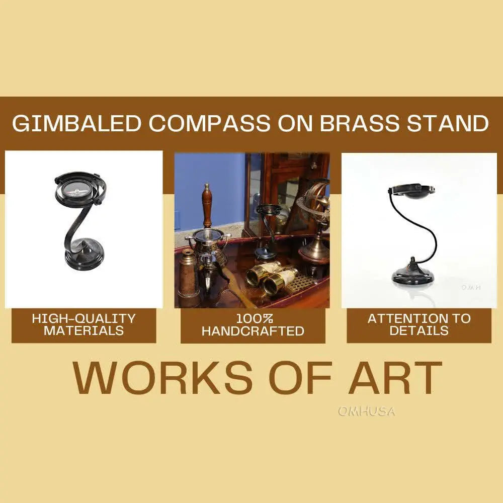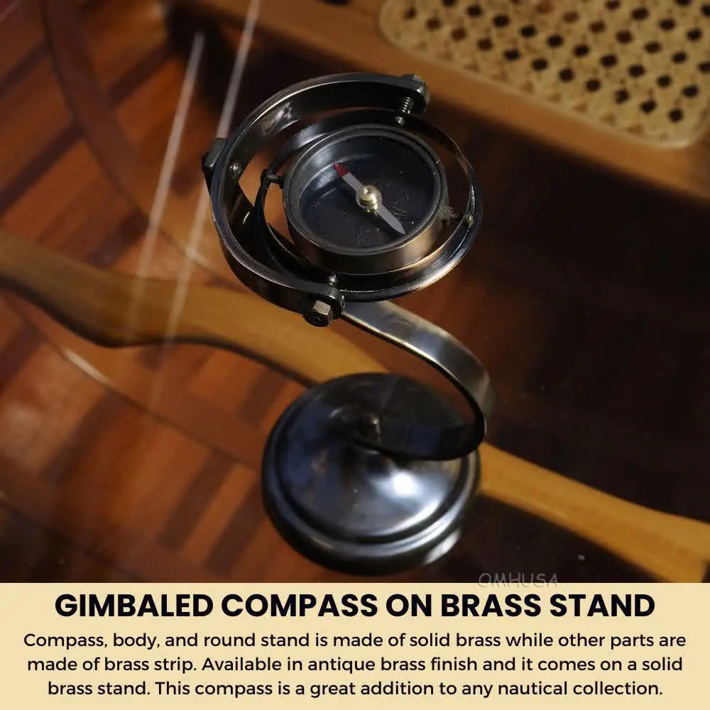 Brass Gimbaled Compass on Stand – Antique Finish – 7 Inch Nautical Display By Old Modern Handicrafts