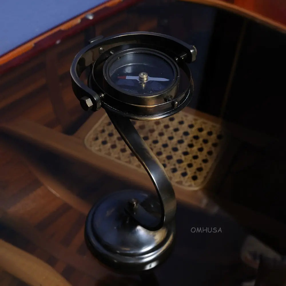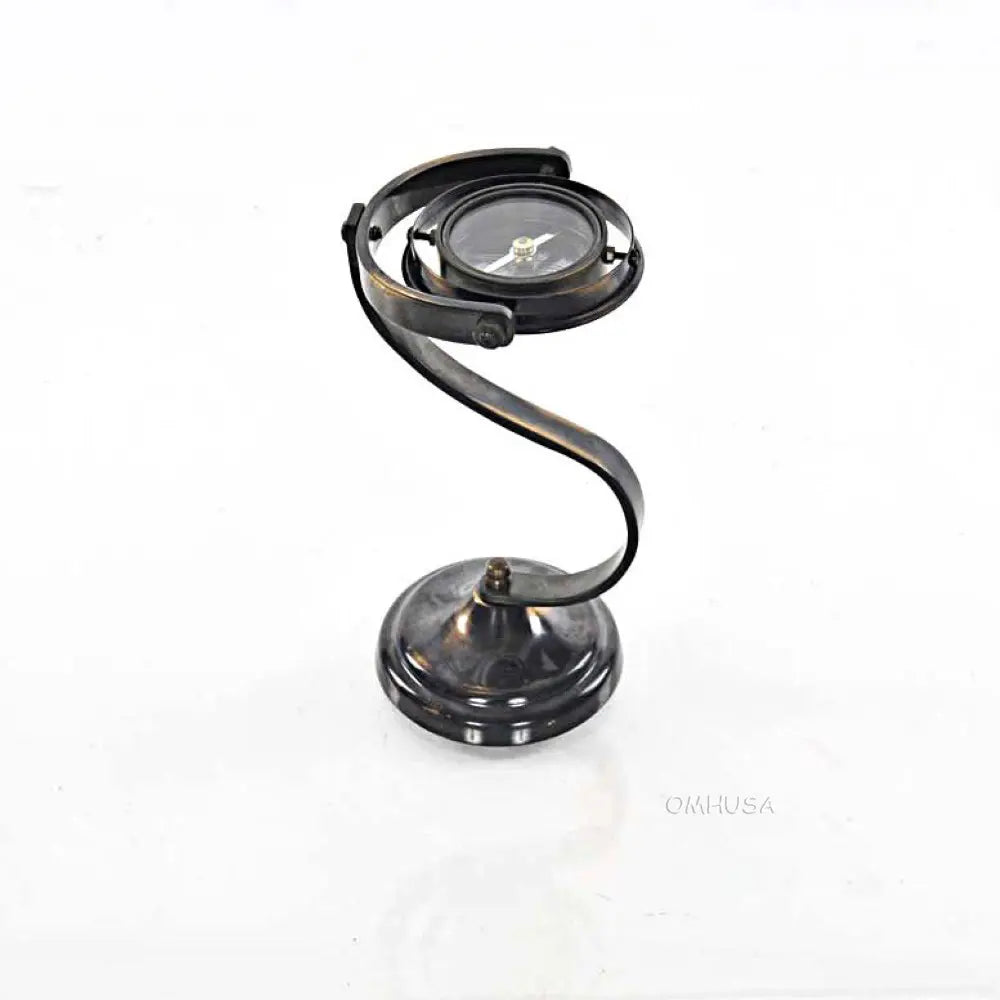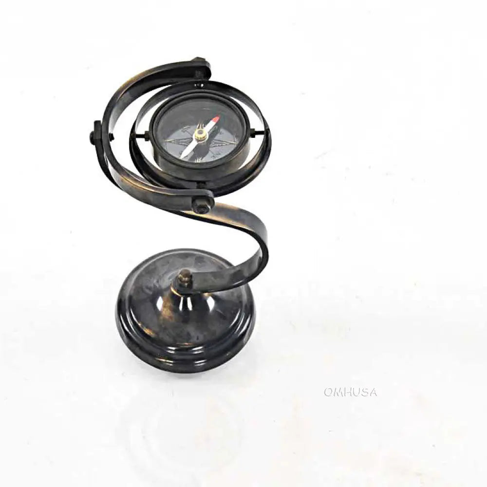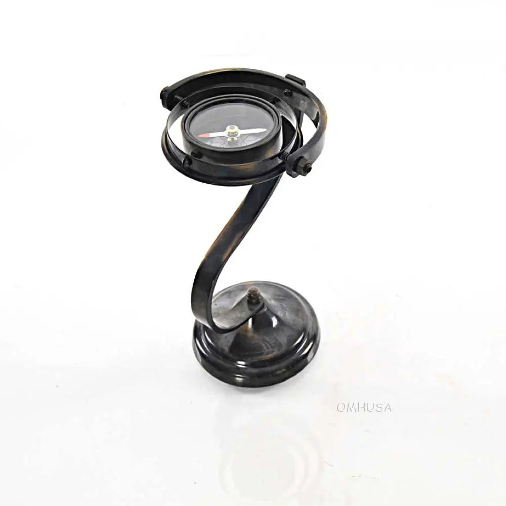 Brass Gimbaled Compass on Stand – Antique Finish – 7 Inch Nautical Display By Old Modern Handicrafts