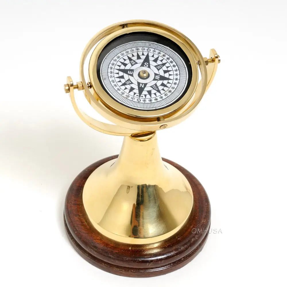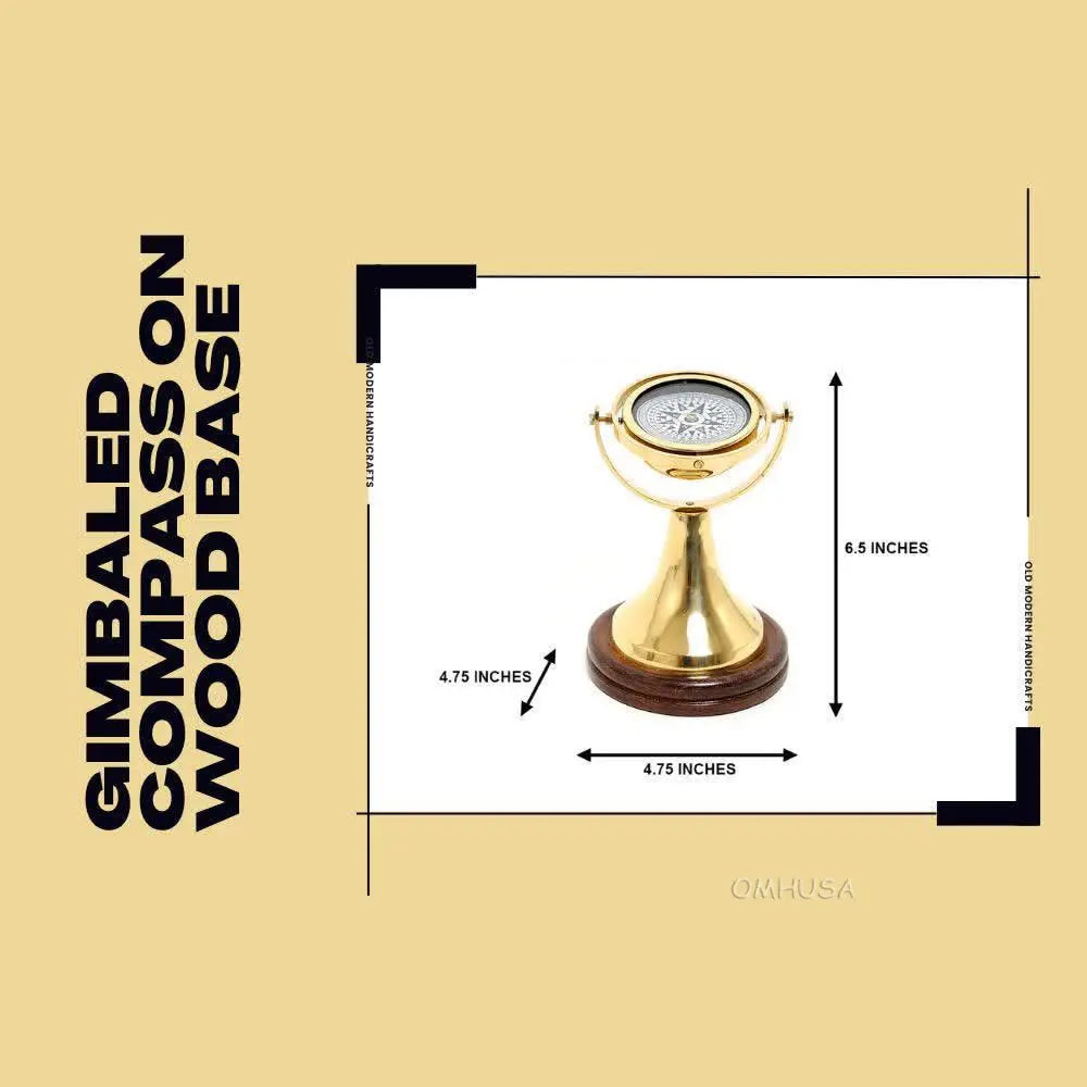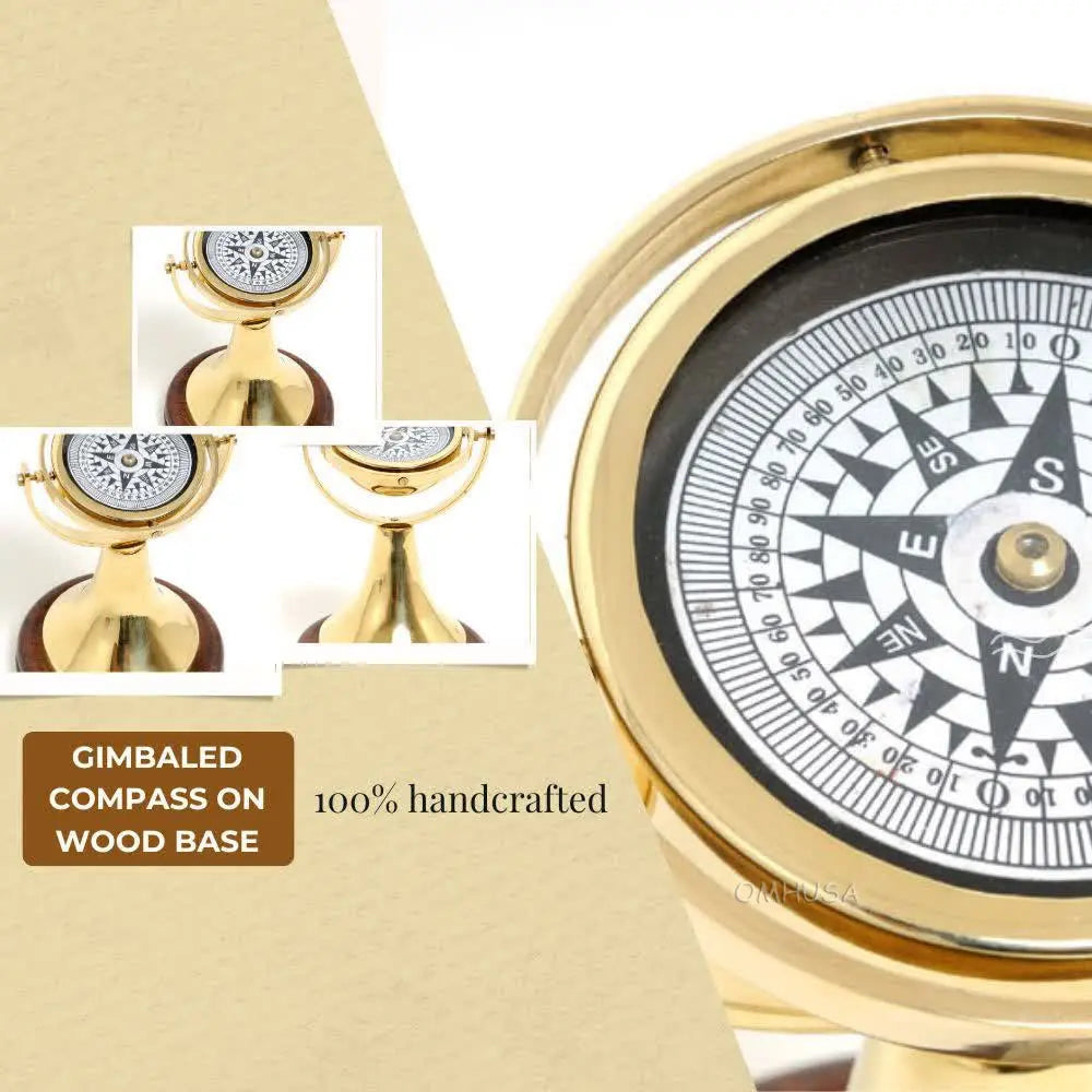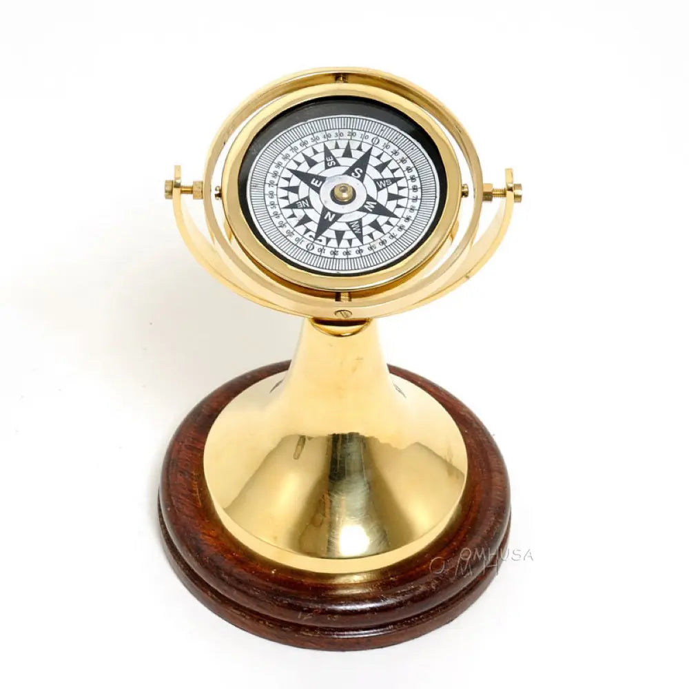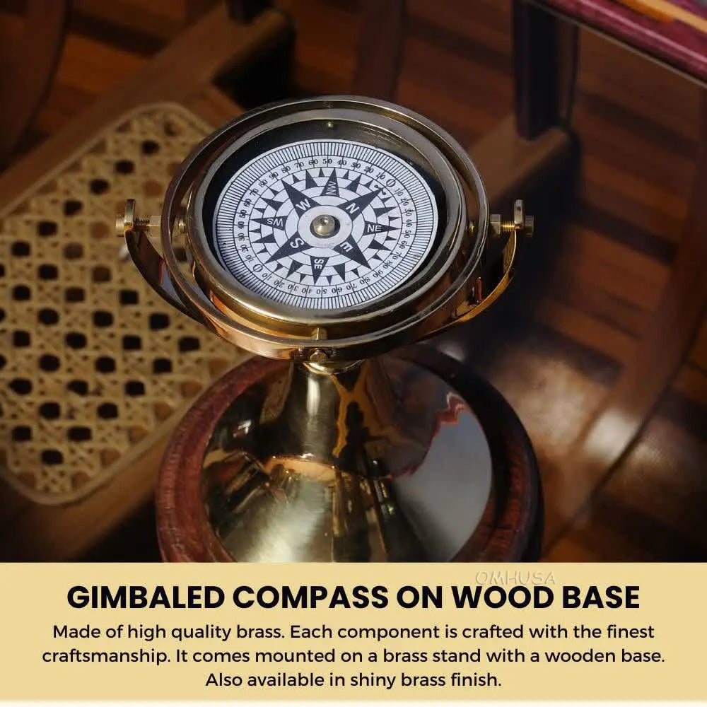 Brass Gimbaled Compass with Wooden Stand – Functional Maritime Decor By Old Modern Handicrafts
