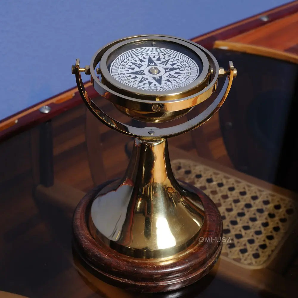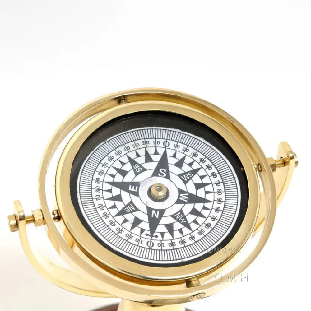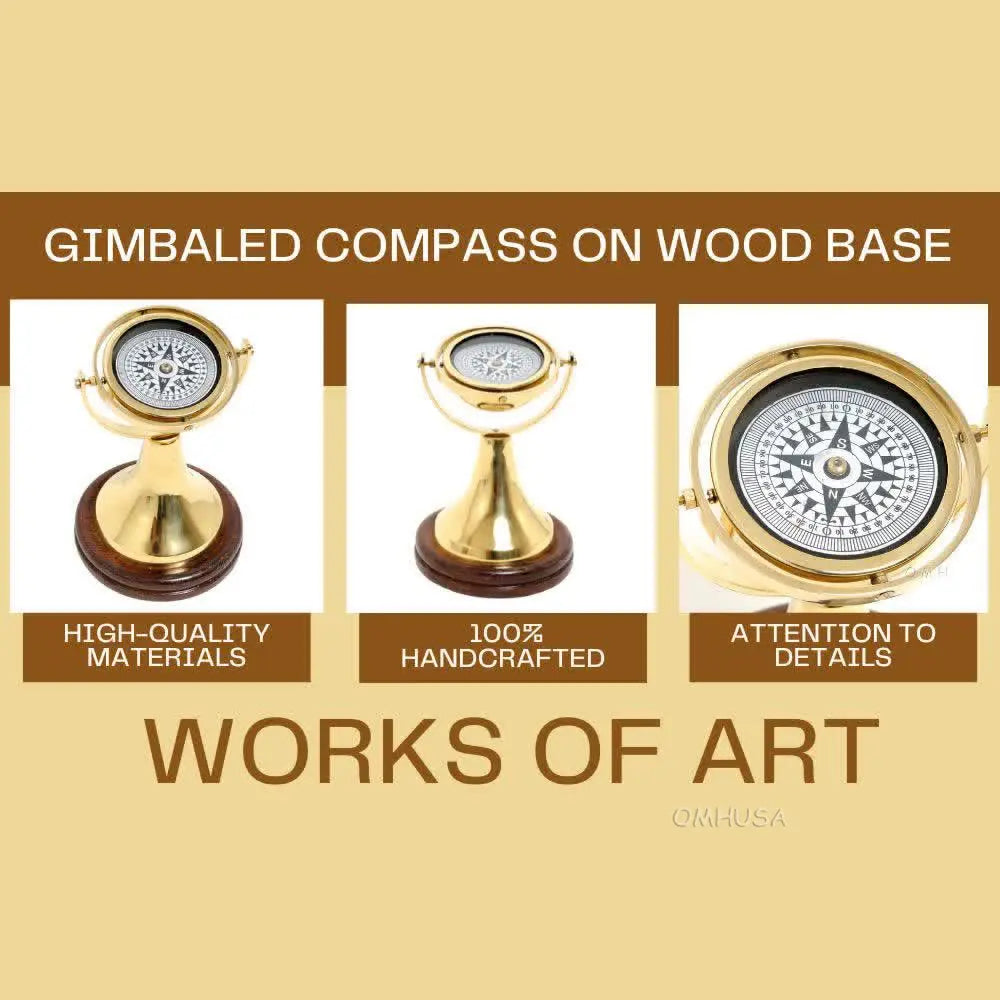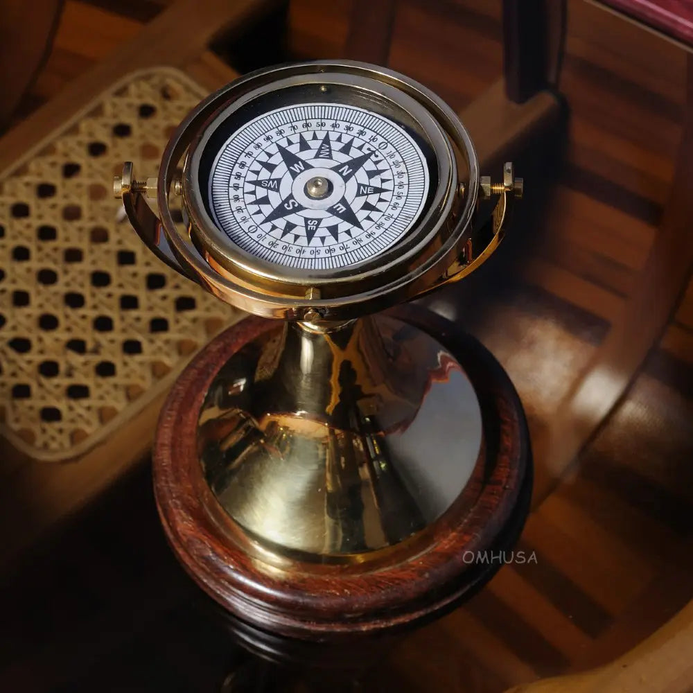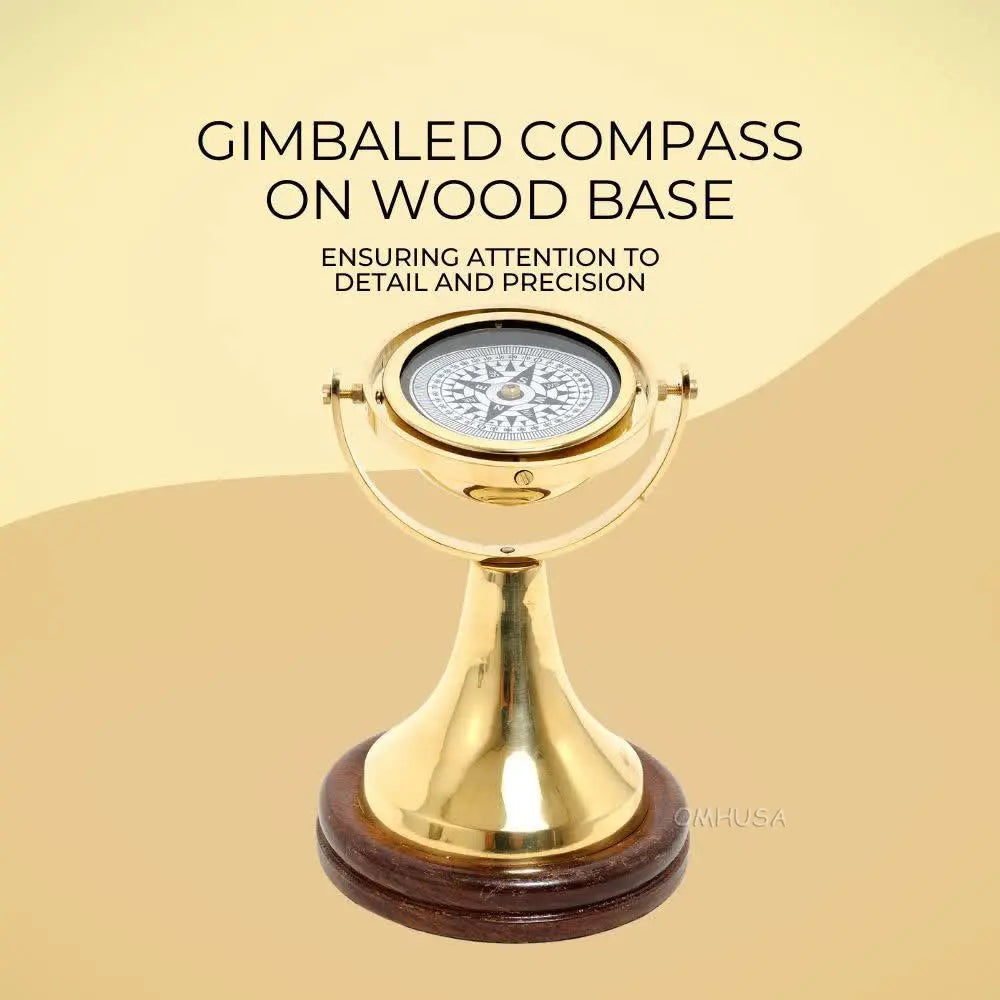 Brass Gimbaled Compass with Wooden Stand – Functional Maritime Decor By Old Modern Handicrafts