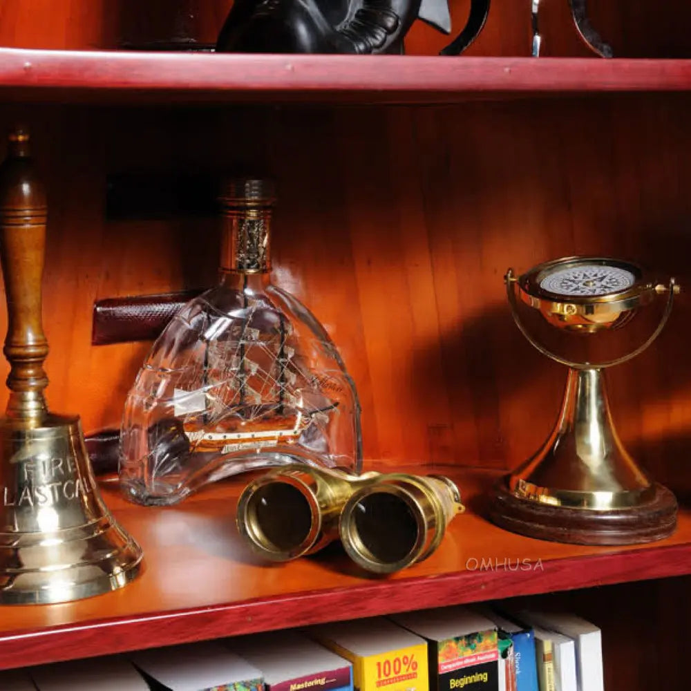 The Gimbaled Compass on Wood Base is a fully functional nautical instrument crafted from high-quality solid brass. Featuring a precise gimbaled mechanism mounted on a polished wooden base, this compass combines practical use with decorative elegance. Each component is carefully handcrafted for accuracy and durability. Measuring 4.75 x 4.75 x 6.5 inches, it is ideal for desks, displays, or as a collectible for maritime enthusiasts. Available in shiny or antique brass finish, this compass is a perfect addition to any nautical collection, offering both functional navigation and a classic maritime aesthetic for home or office display.