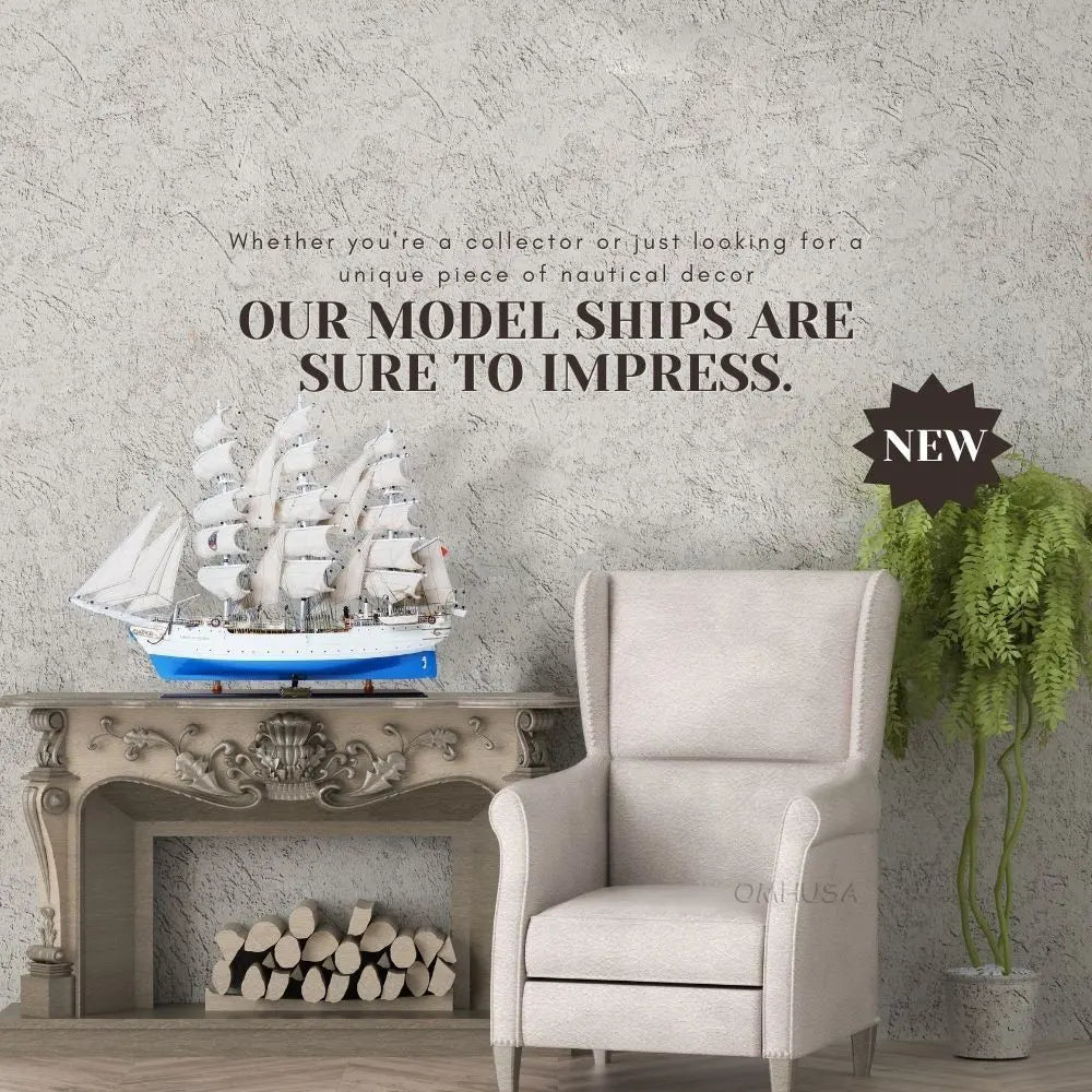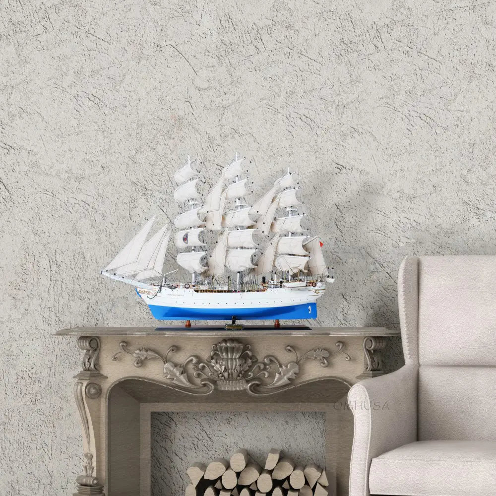 - Features three decks, bowsprit, masts, rigging, and hand stitched sails
