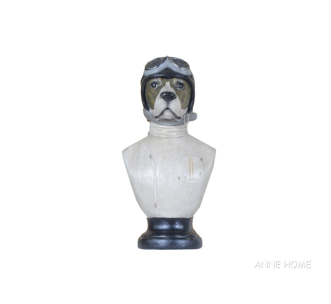 Dog Sculpture Bust - Handmade Resin Aviator - 19.5 Inch Decorative Piece By Old Modern Handicrafts