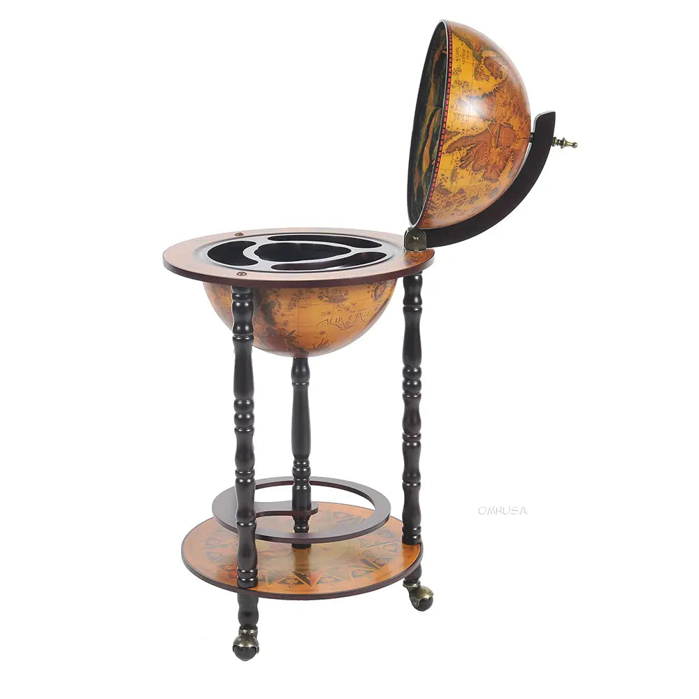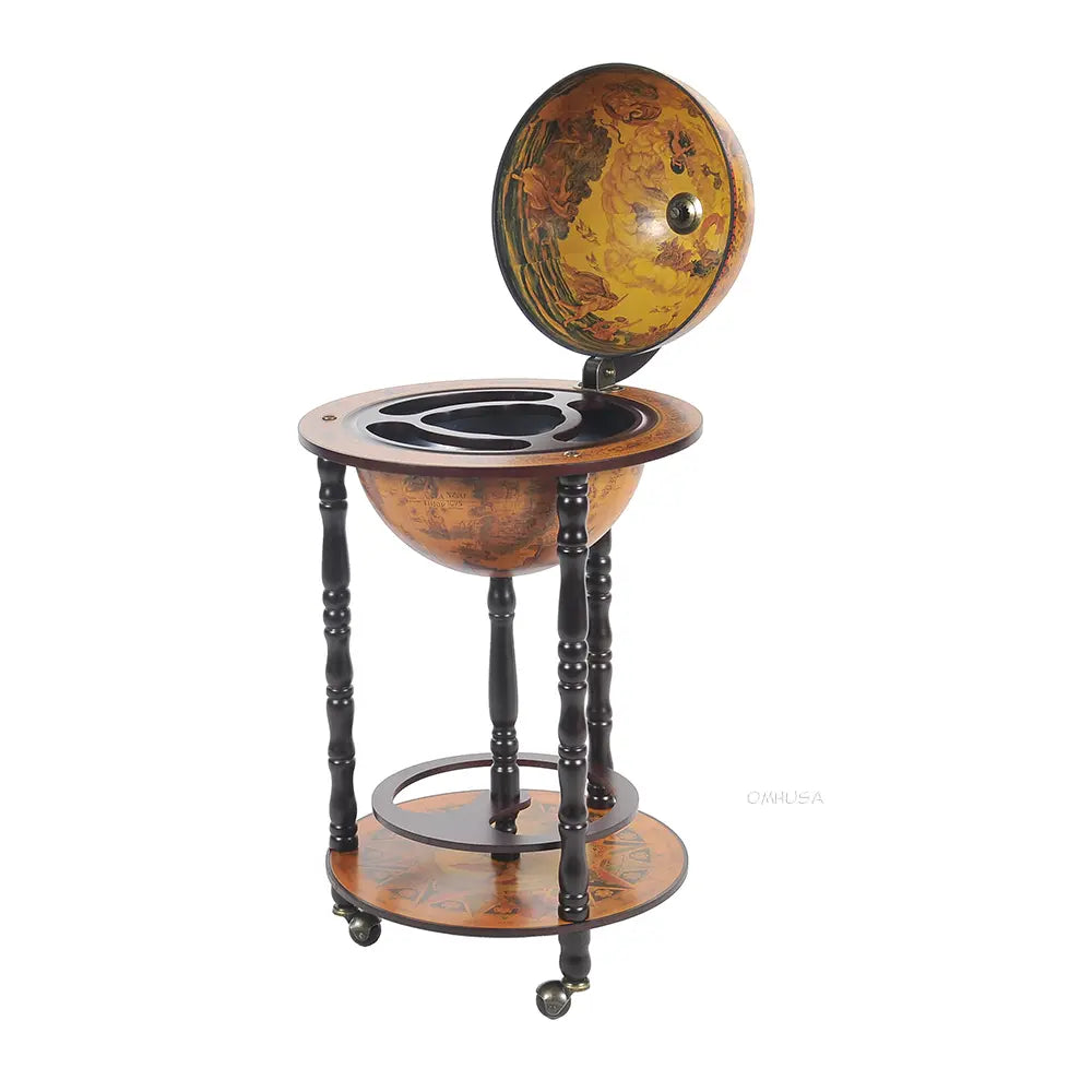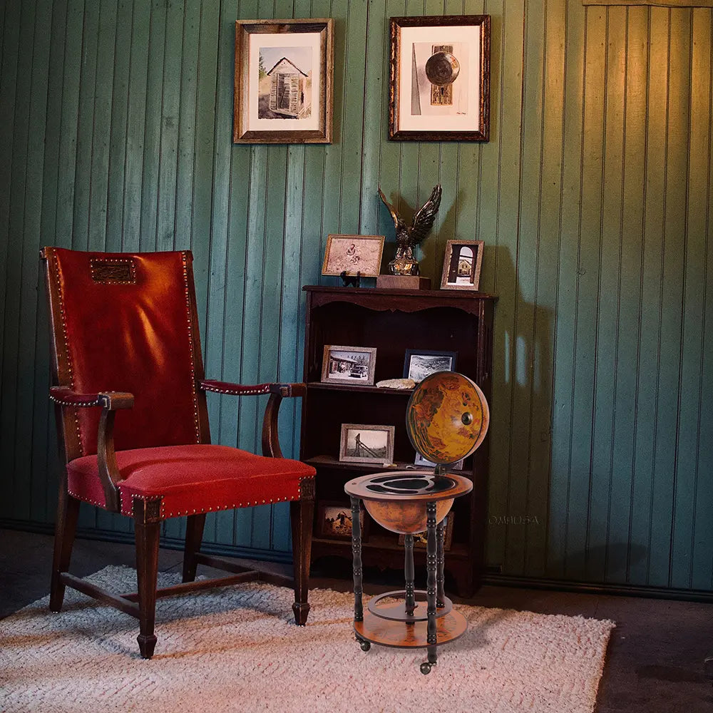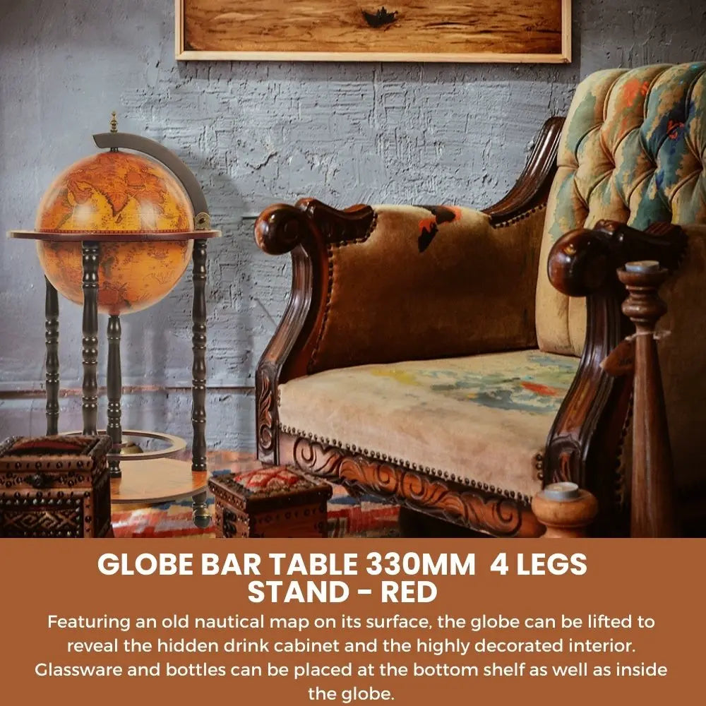 The Globe Bar Table – 35H Red Wooden Cabinet – Nautical Map Design combines stylish home bar functionality with unique nautical charm. Featuring a vintage nautical map on its surface, the globe lifts to reveal a hidden drink cabinet with a highly decorated interior, perfect for bottles and glassware. The wooden cabinet is painted in dark red mahogany and rests on four carved legs with wheel accents for easy mobility. The globe bar table provides both storage and aesthetic appeal, enhancing any living room, den, or entertainment space. Ideal for home bartenders or collectors, it adds sophisticated maritime flair while keeping drinks and accessories organized.