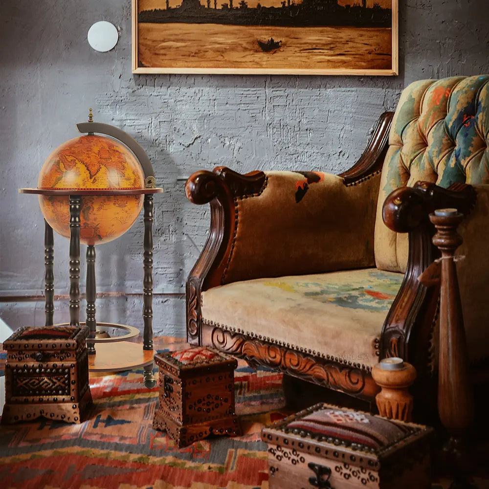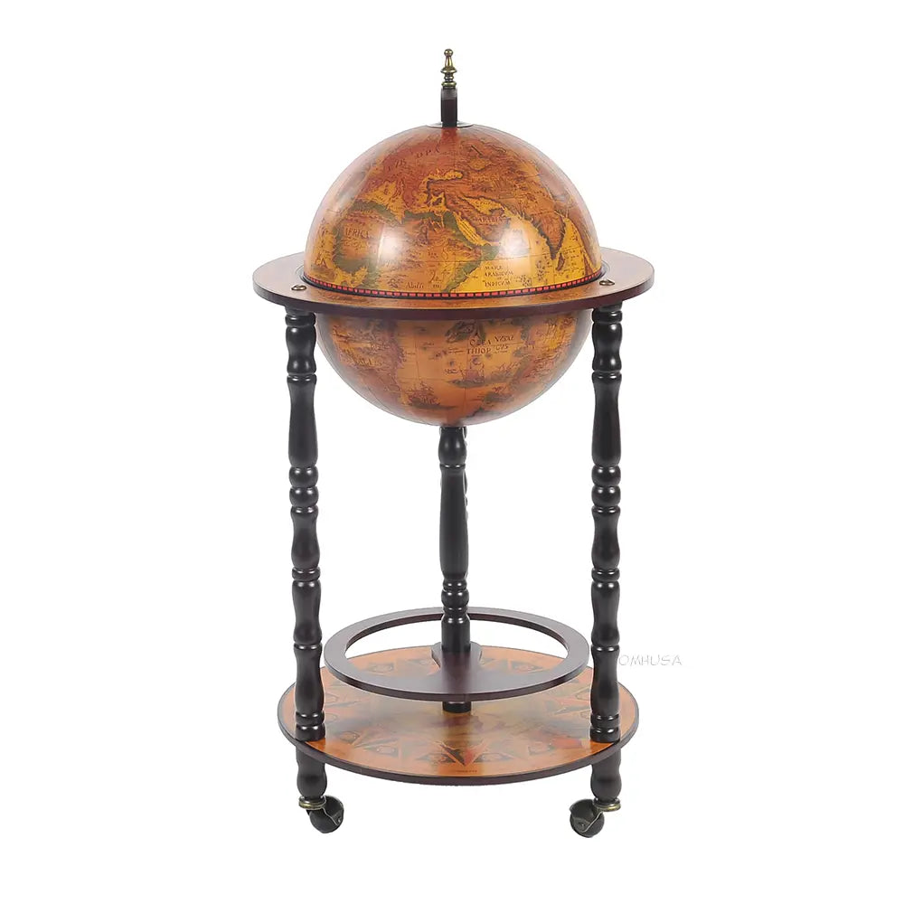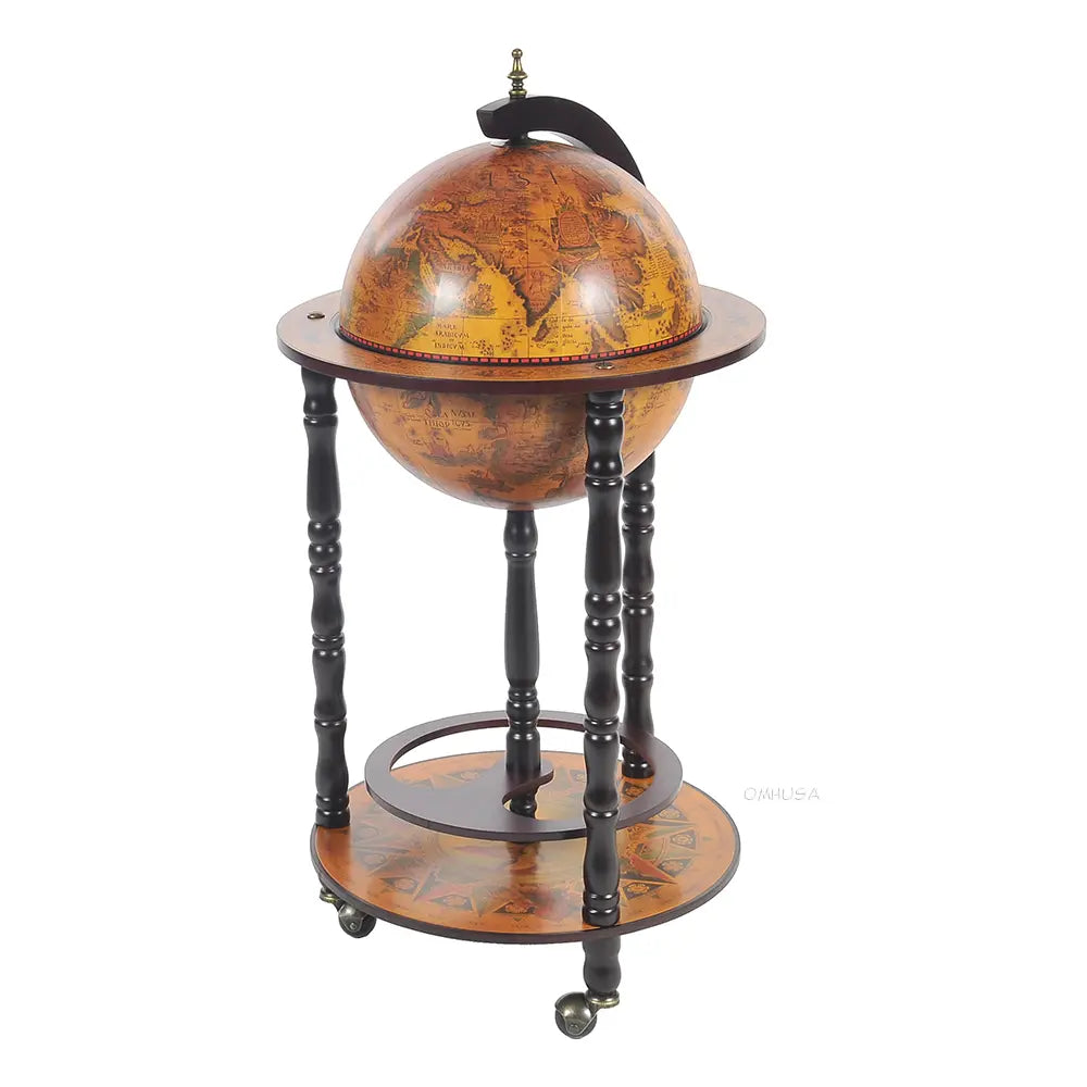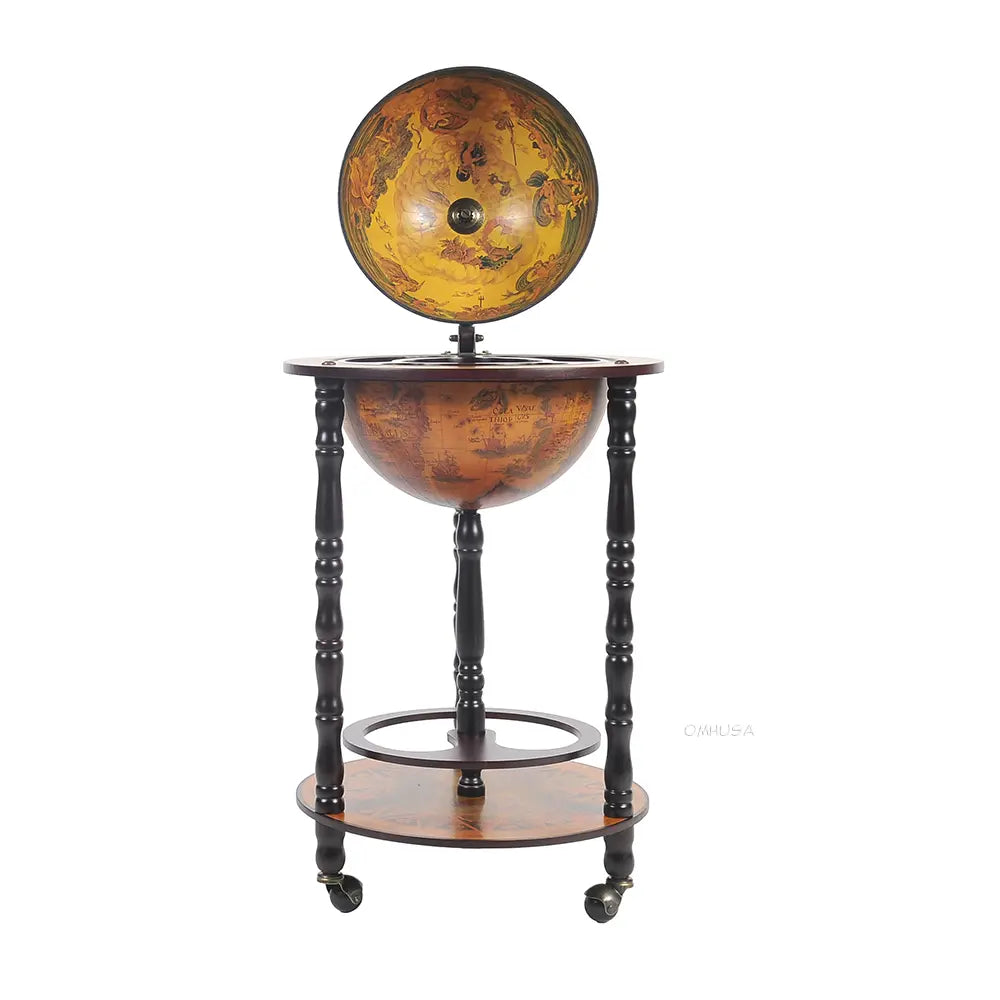 The Globe Bar Table – 35H Red Wooden Cabinet – Nautical Map Design combines stylish home bar functionality with unique nautical charm. Featuring a vintage nautical map on its surface, the globe lifts to reveal a hidden drink cabinet with a highly decorated interior, perfect for bottles and glassware. The wooden cabinet is painted in dark red mahogany and rests on four carved legs with wheel accents for easy mobility. The globe bar table provides both storage and aesthetic appeal, enhancing any living room, den, or entertainment space. Ideal for home bartenders or collectors, it adds sophisticated maritime flair while keeping drinks and accessories organized.
