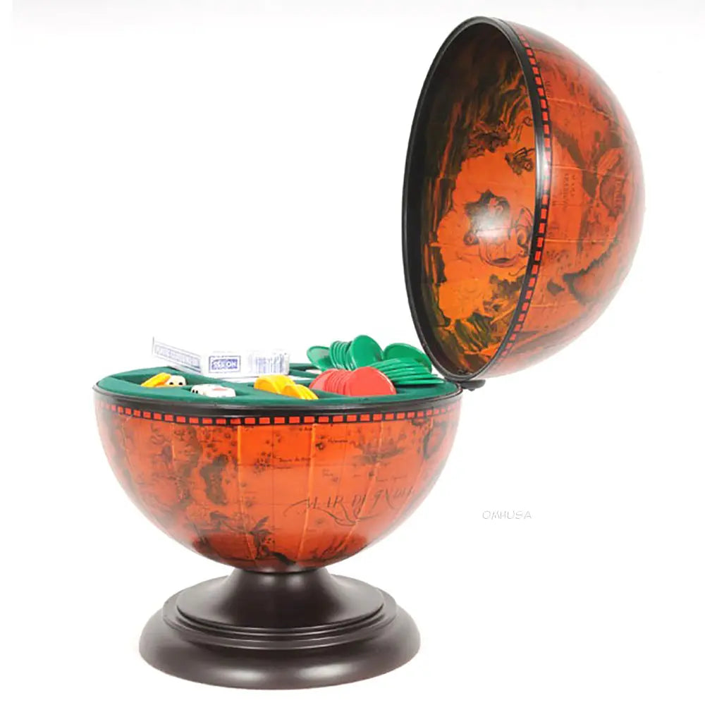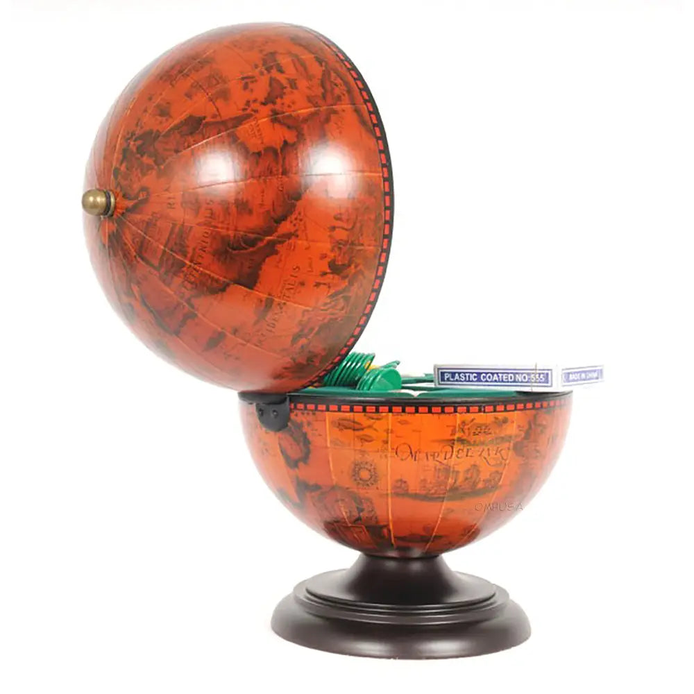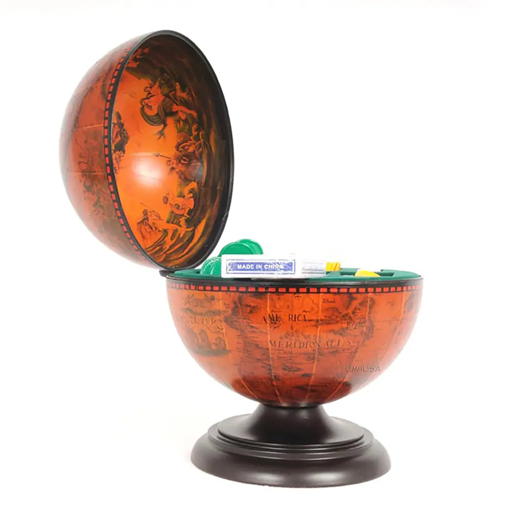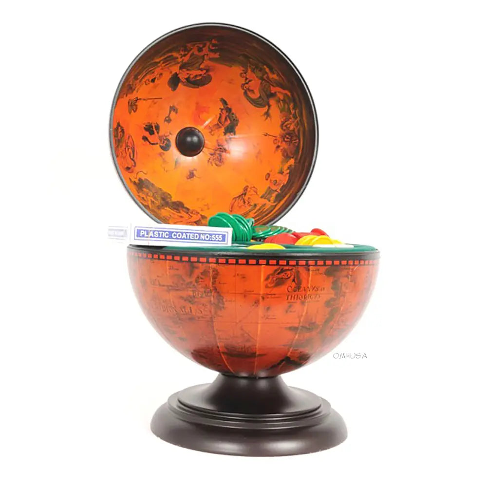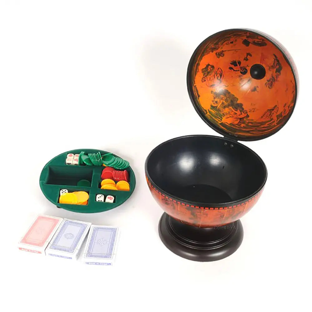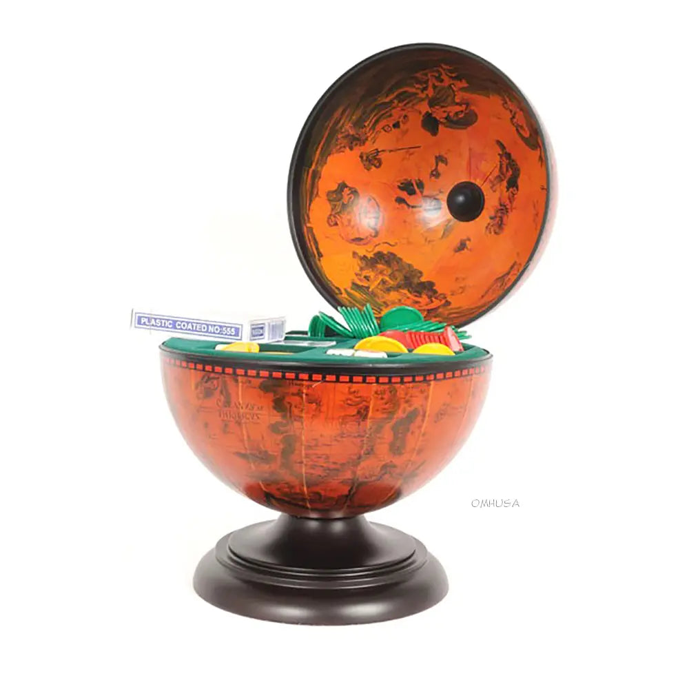 The Globe Poker Set – 11H Wooden Game Case – Decorative Felt Interior combines entertainment with timeless craftsmanship. Handcrafted from solid wood, this globe-shaped poker set features a soft felt interior and elegant vintage design. Inside, you’ll find two decks of cards, dice, and colorful poker chips neatly organized for easy access. The unique globe form opens to reveal a complete poker collection, making it both functional and decorative. Ideal for game nights, living room display, or gifting, this set adds sophistication and charm to any home or office. Perfect for enthusiasts who appreciate both classic style and quality construction.