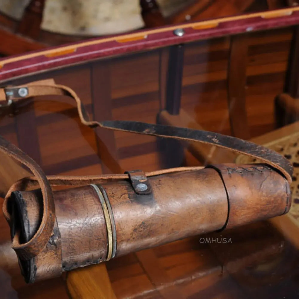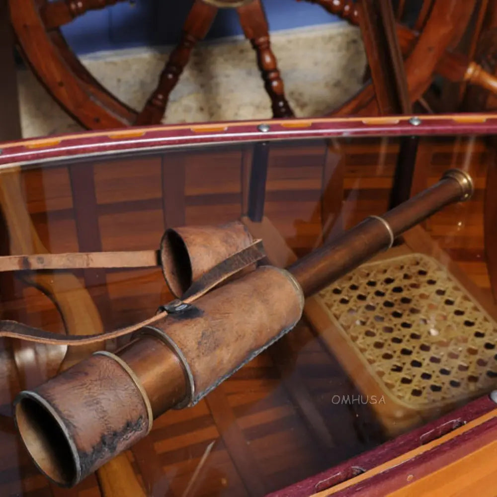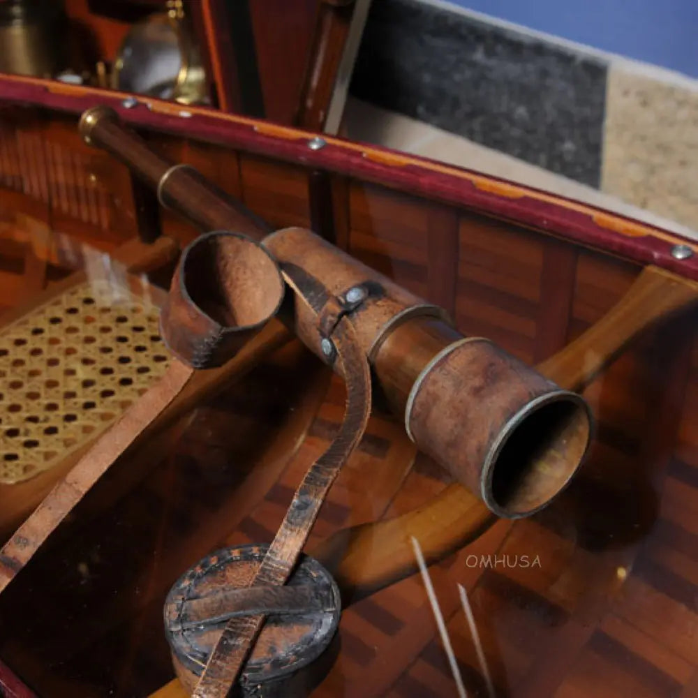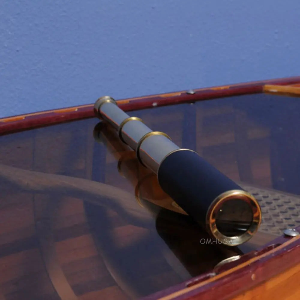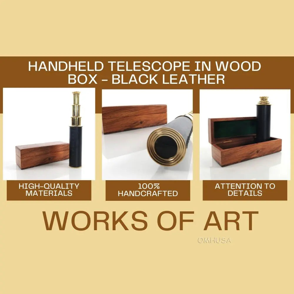 Handheld Telescope – 1.5H Brass with Black Leather – Nautical Wood Box By Old Modern Handicrafts