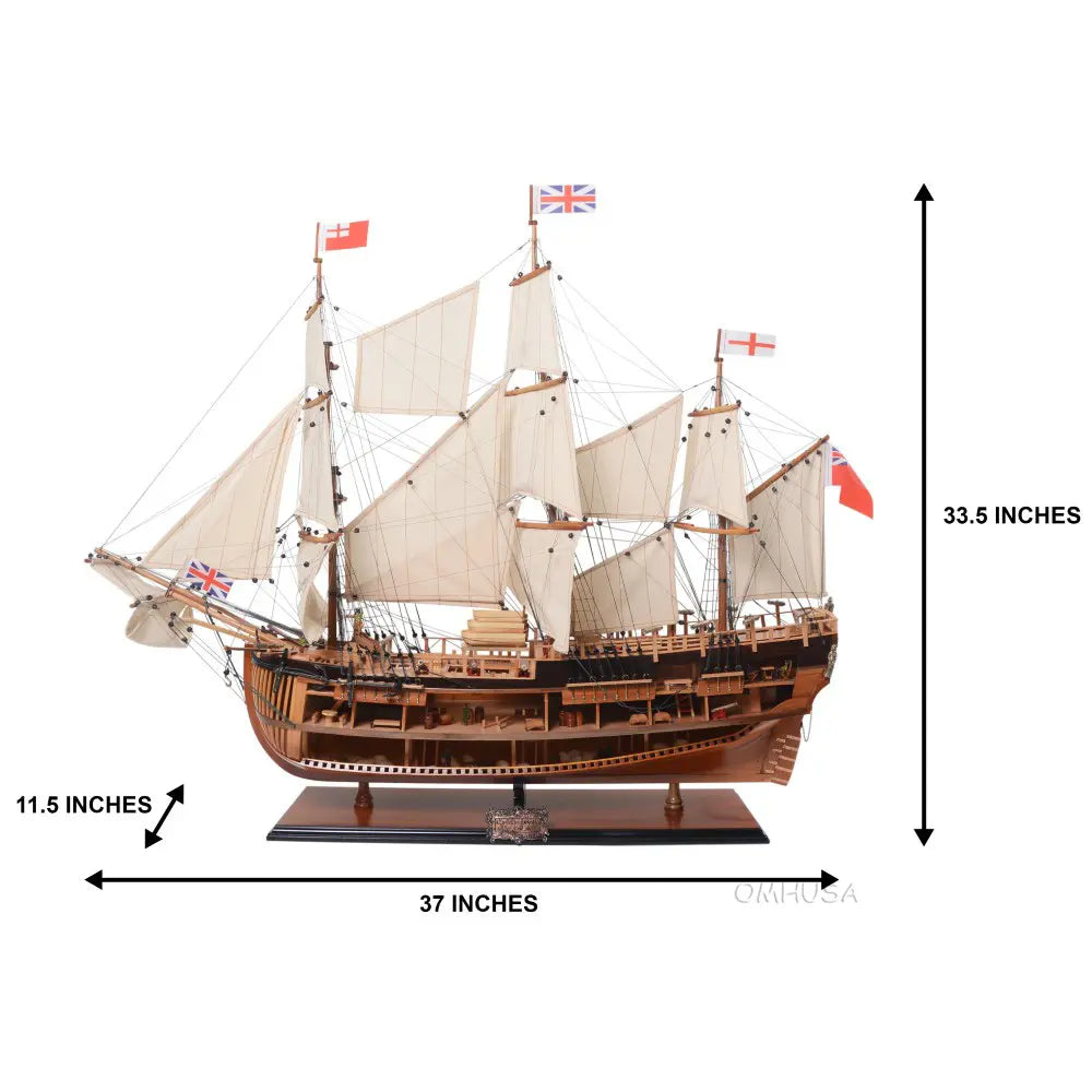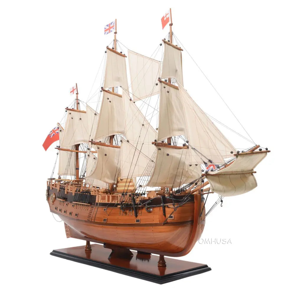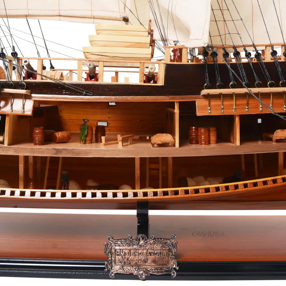 HMS Endeavour Open Hull Wooden Ship Model – 33-Inch Handcrafted Historic Replica By Old Modern Handicrafts