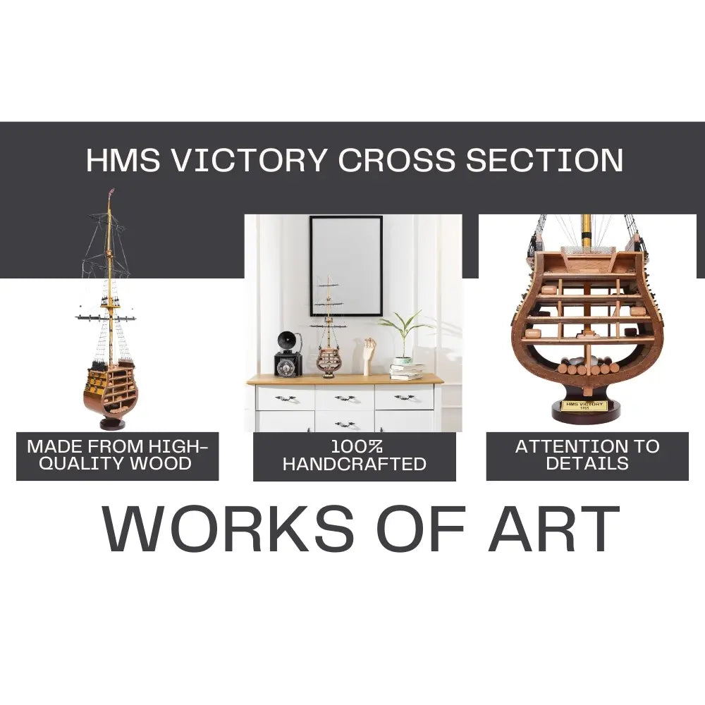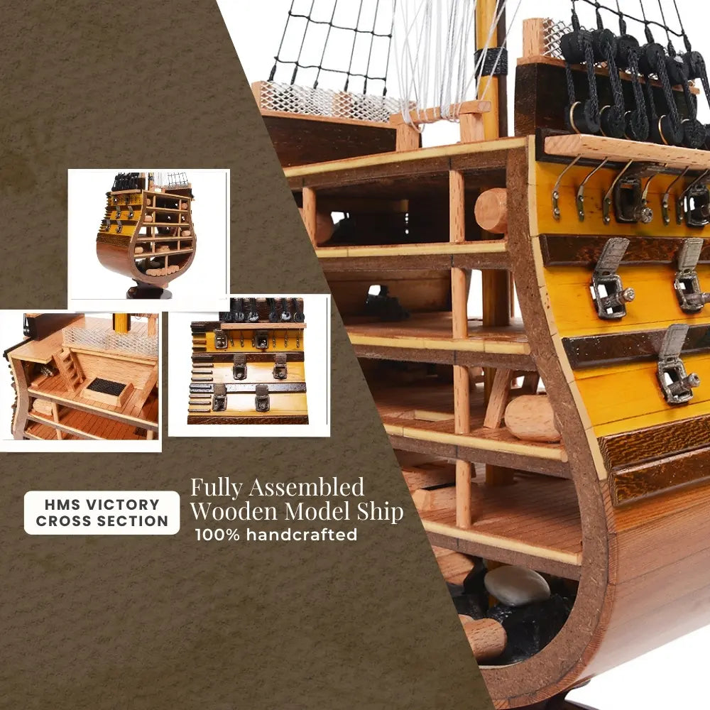 HMS Victory Cross Section – 35.25 in – Handcrafted Wooden Ship Model with Detailed Decks By Old Modern Handicrafts