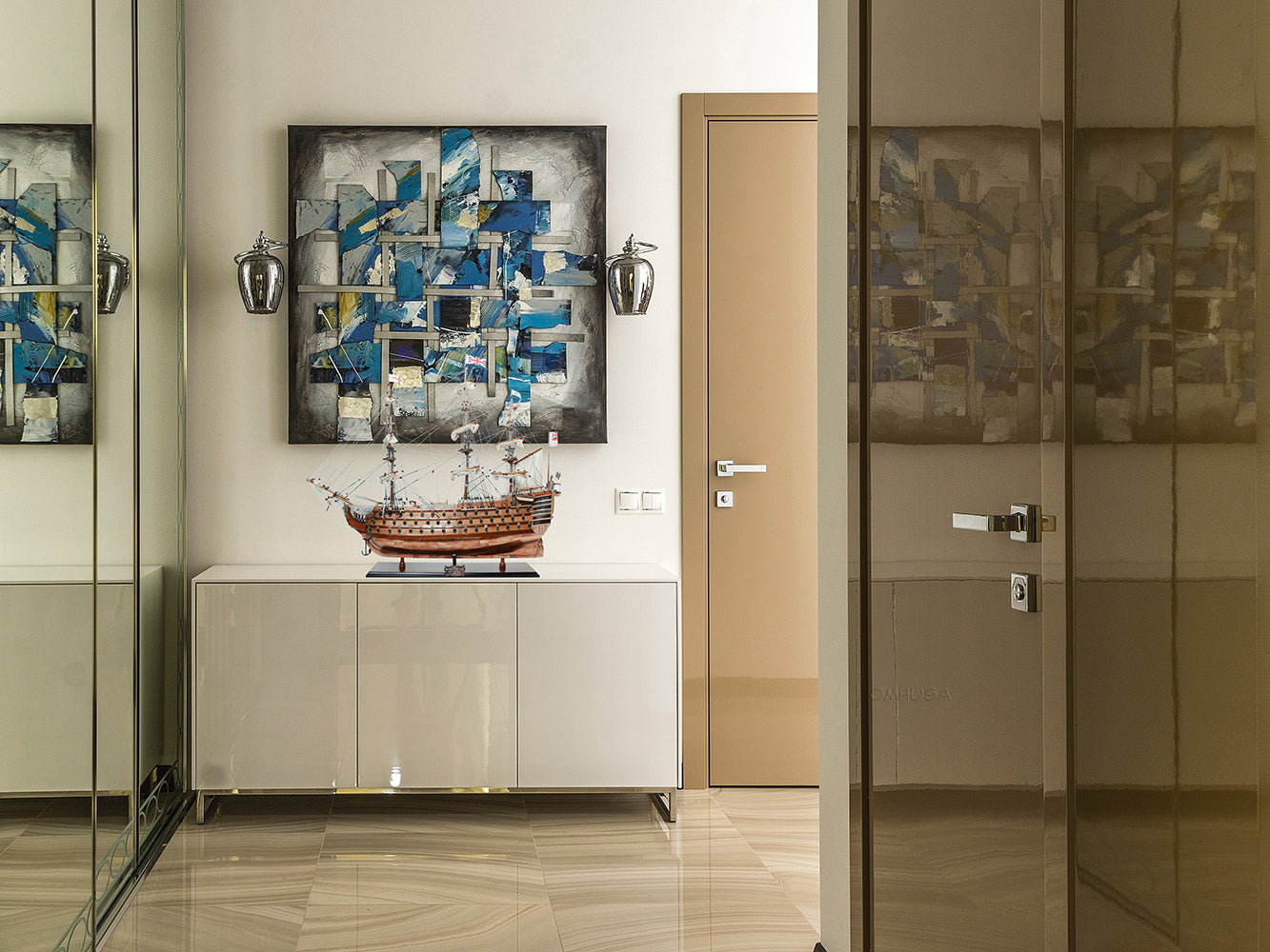- Hand-stitched linen sails and detailed metal ornaments