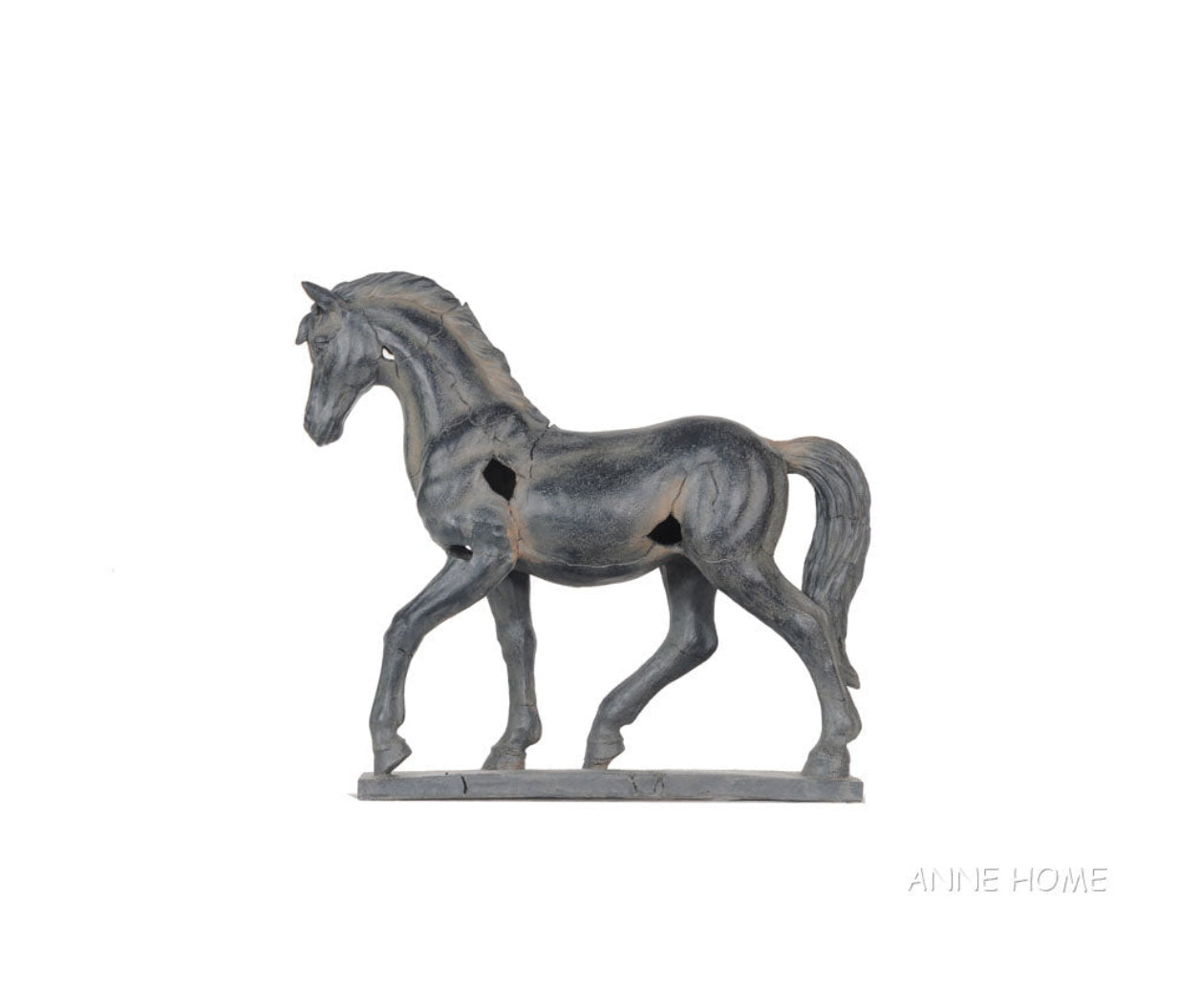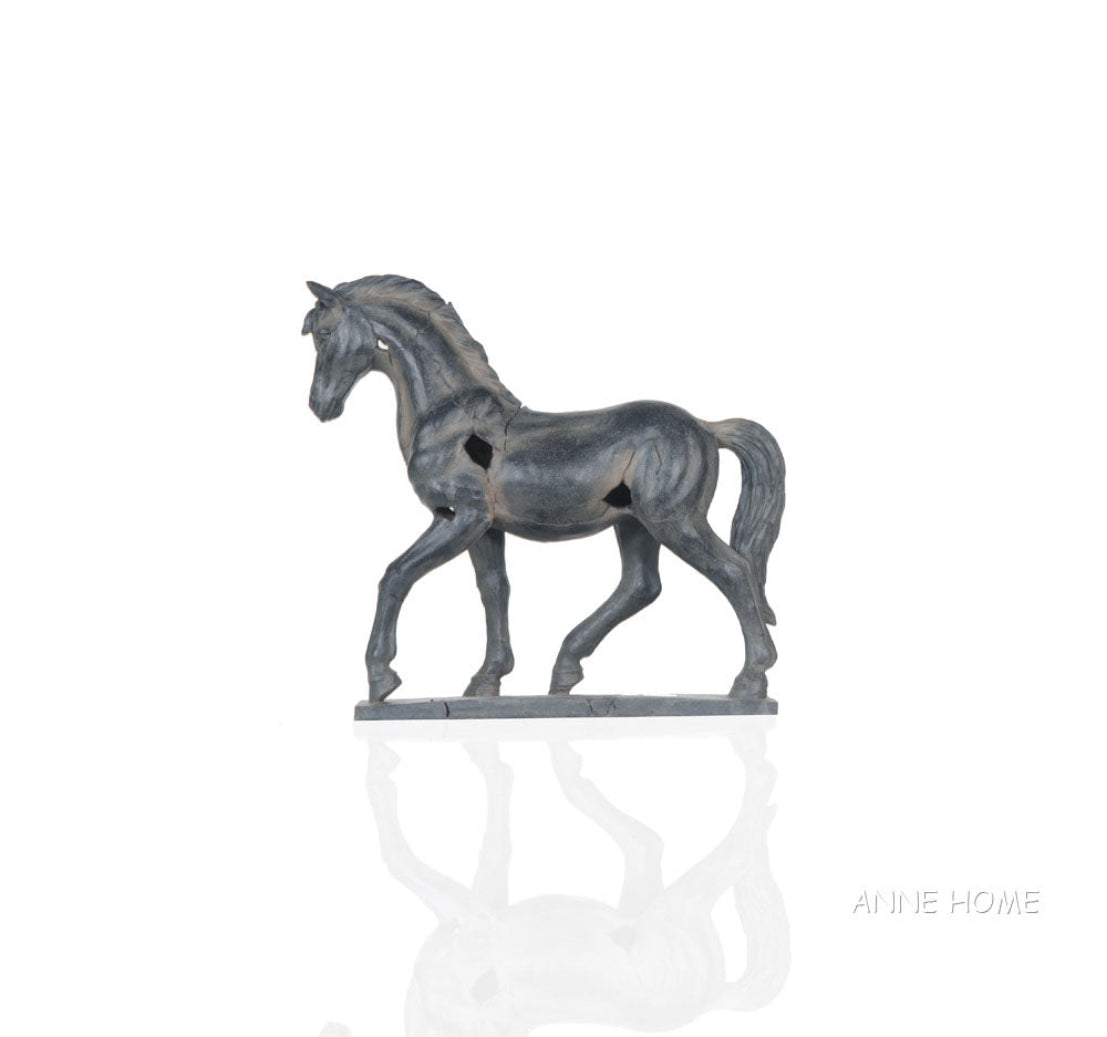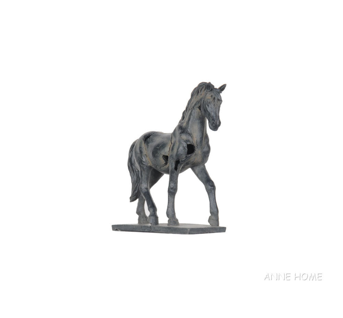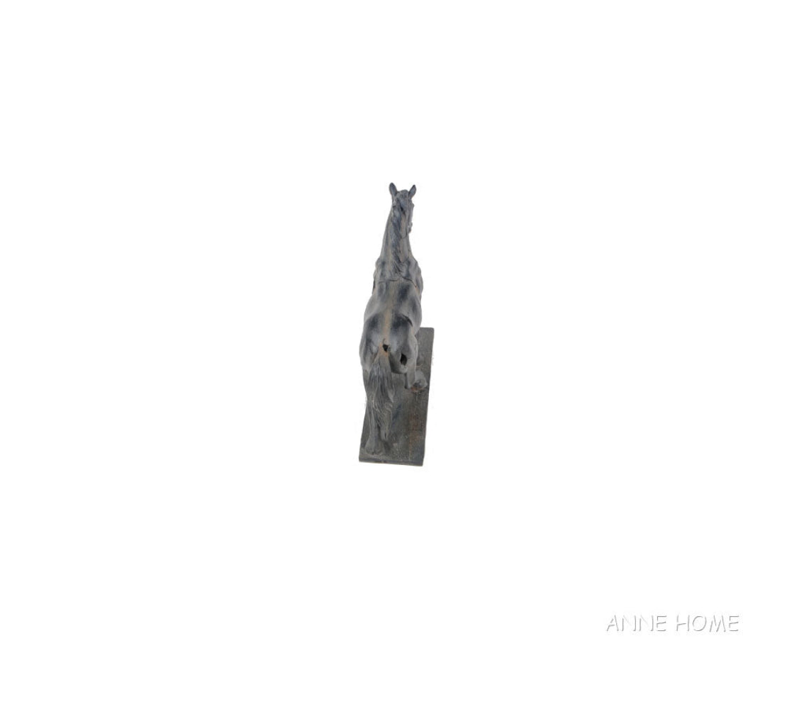 - Handmade resin horse statue with rustic textured finish